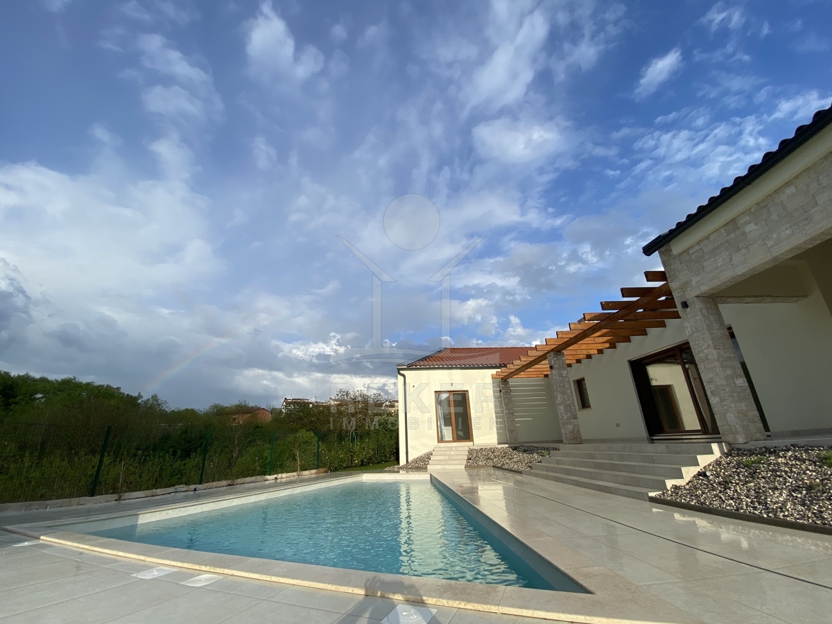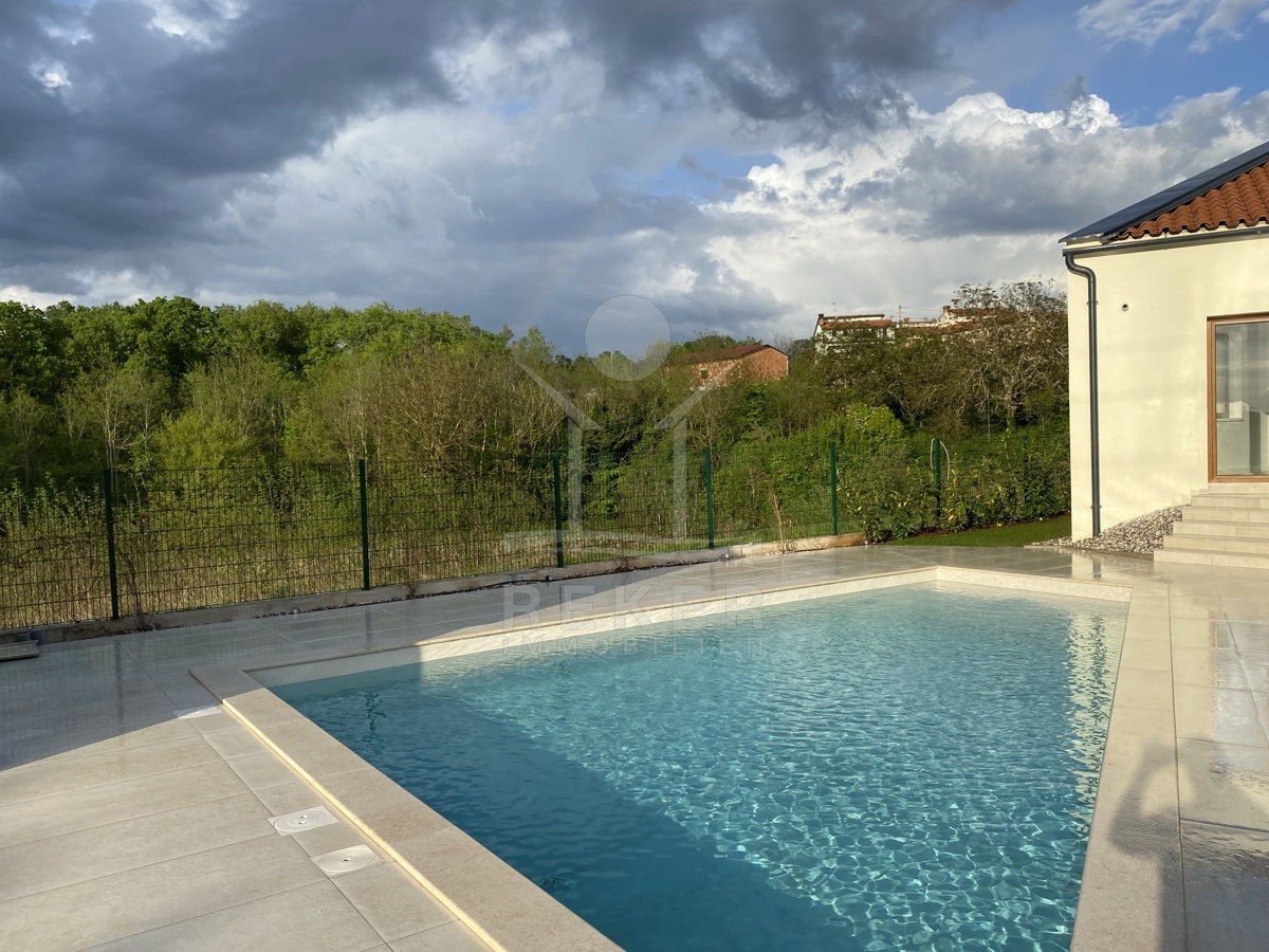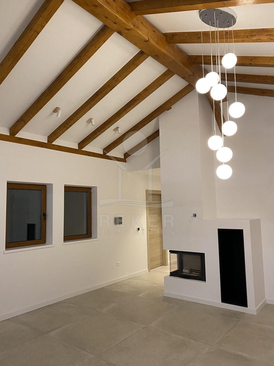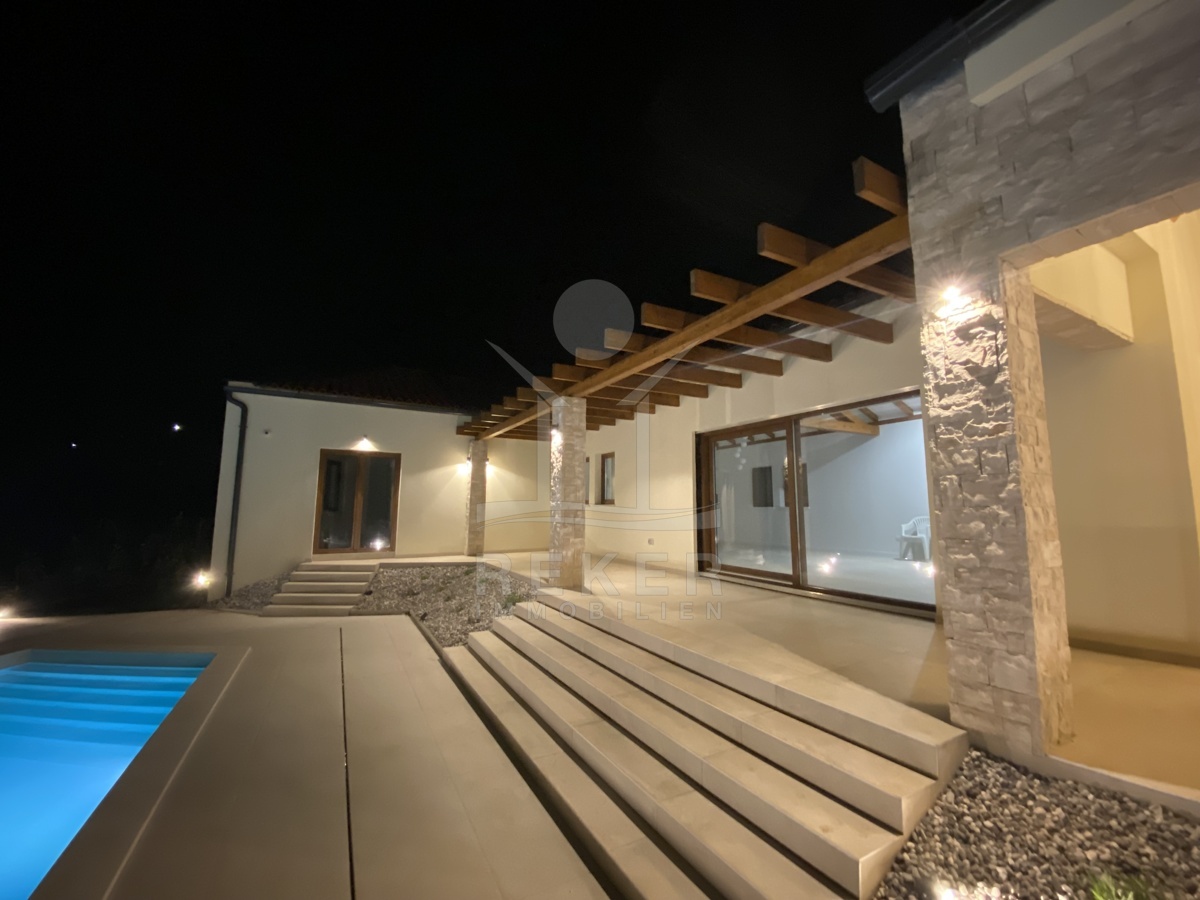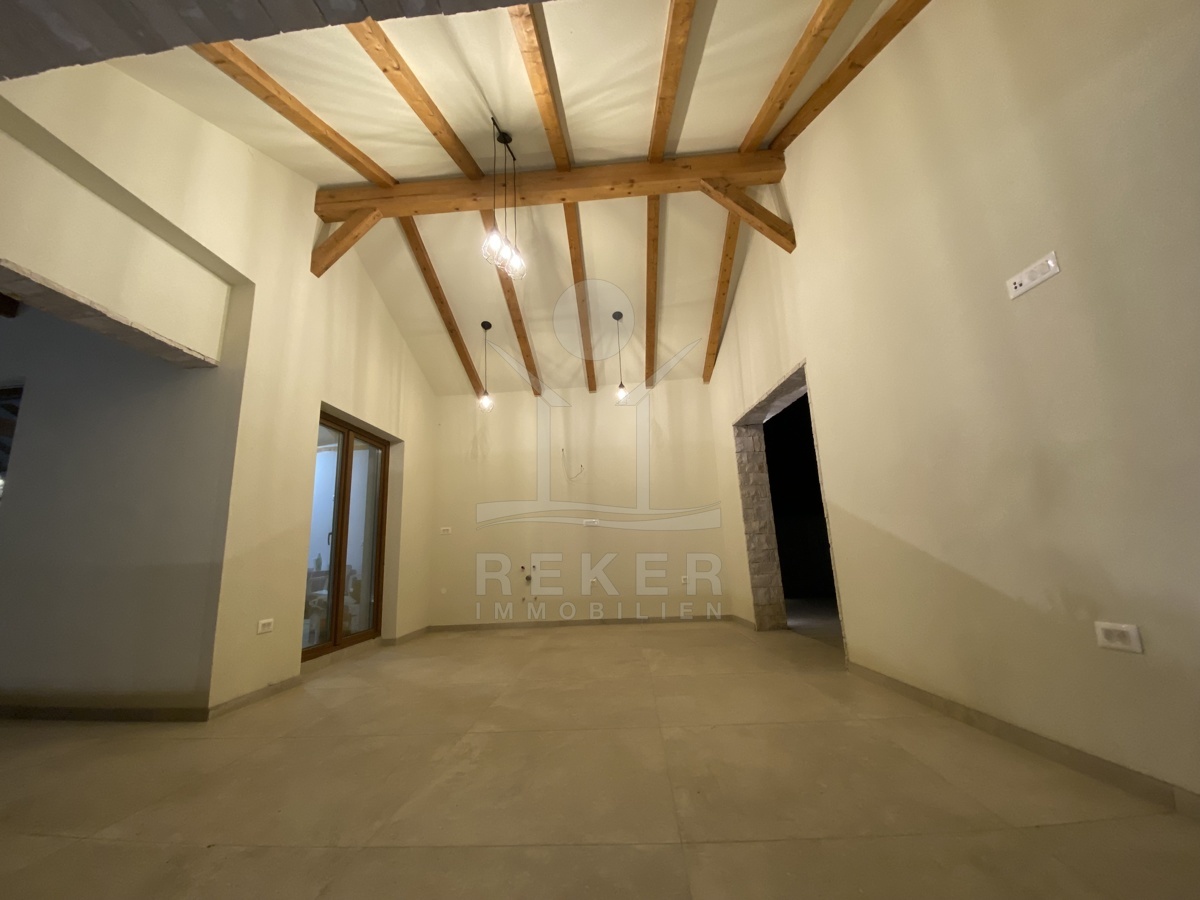 Rund 18 Kilometer von der Küste entfernt, liegt dieses hochwertige Einfamilienhaus eingebettet in die grüne Hügellandschaft bei Tinjan. Die Umgebung ist geprägt von Ruhe, Natur und viel Privatsphäre. Es gibt kaum Nachbarn – dafür Wald, mediterrane Pflanzen und eine wenig befahrene Straße direkt vor dem Grundstück. Wer Natur liebt und Wert auf Ungestörtheit legt, findet hier ein echtes Refugium.