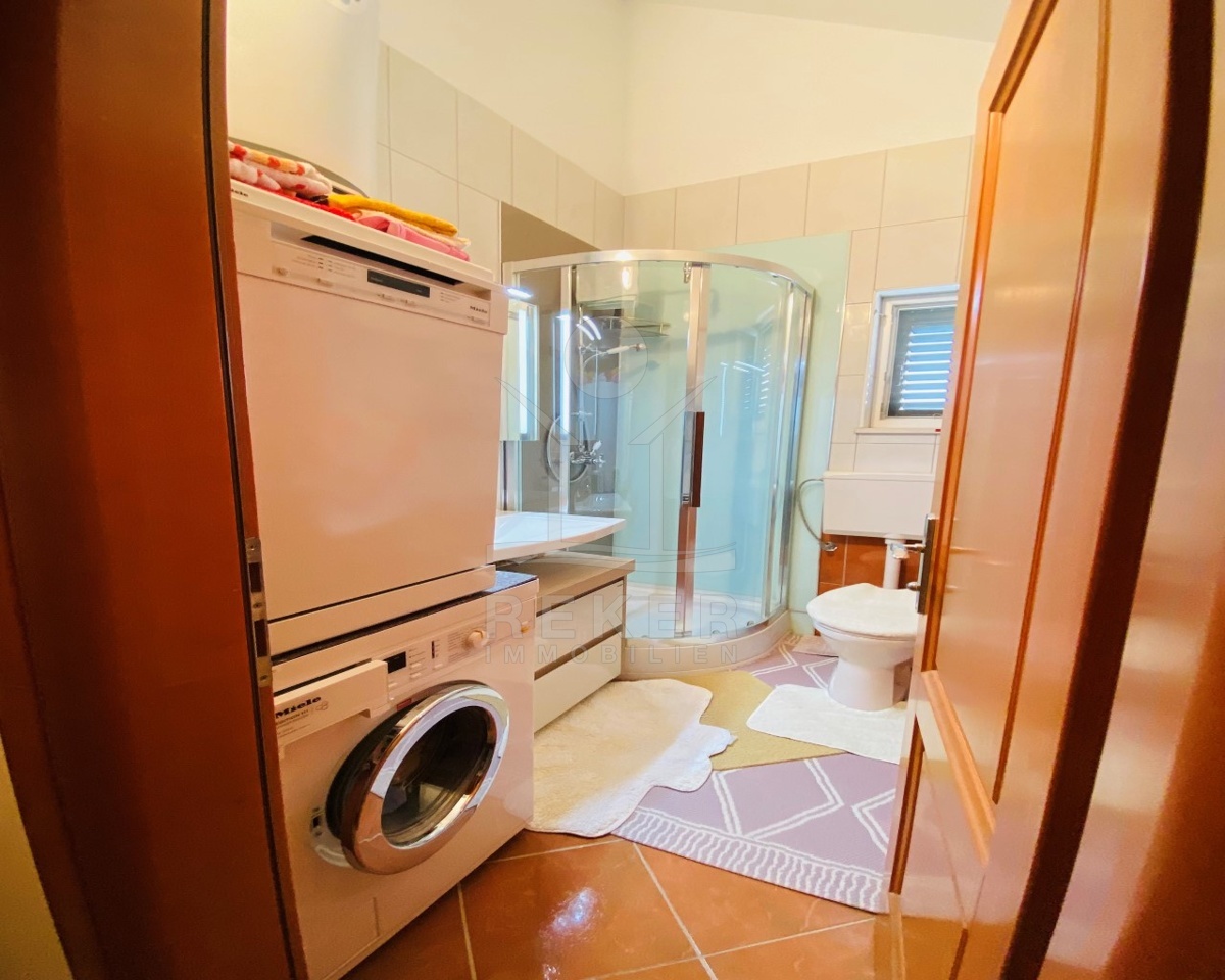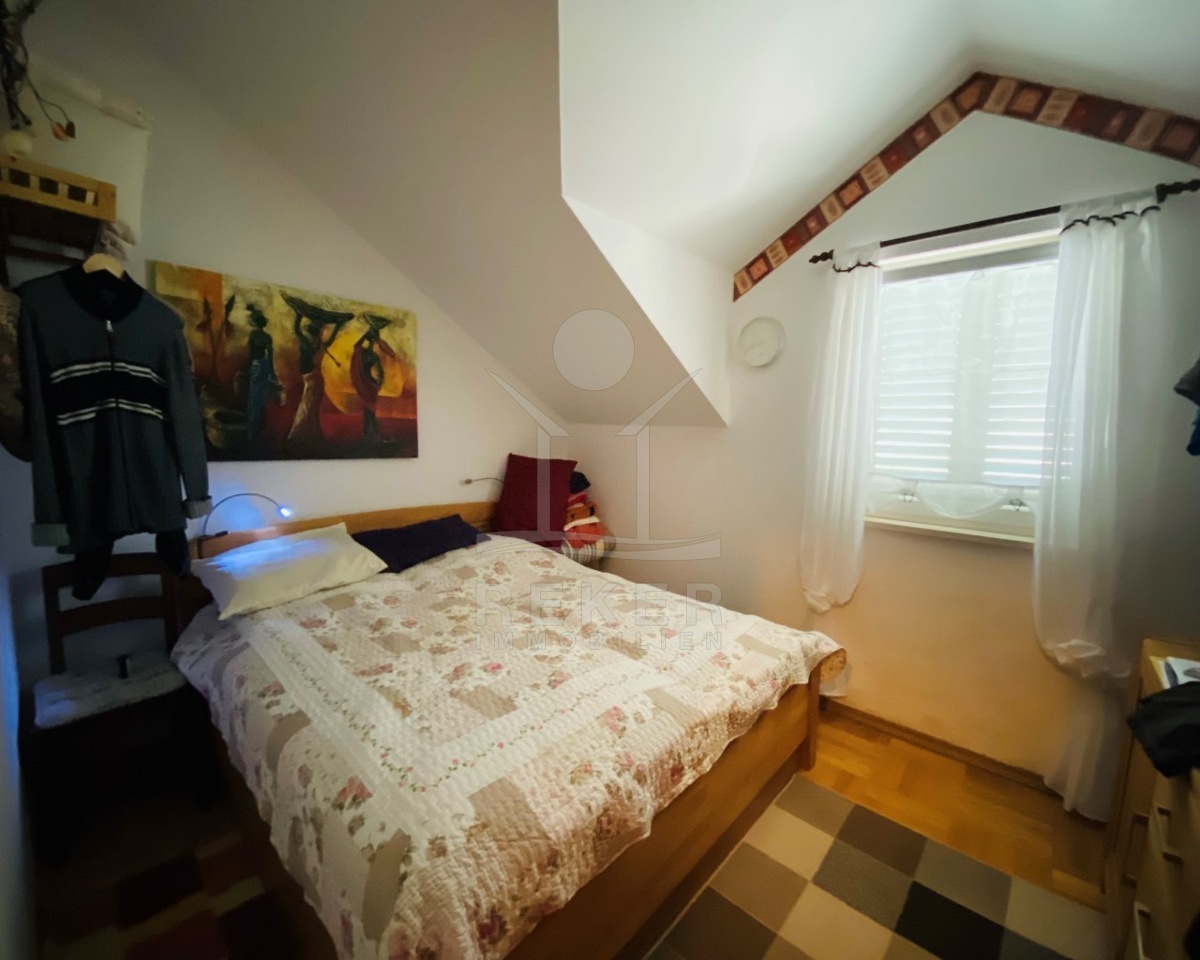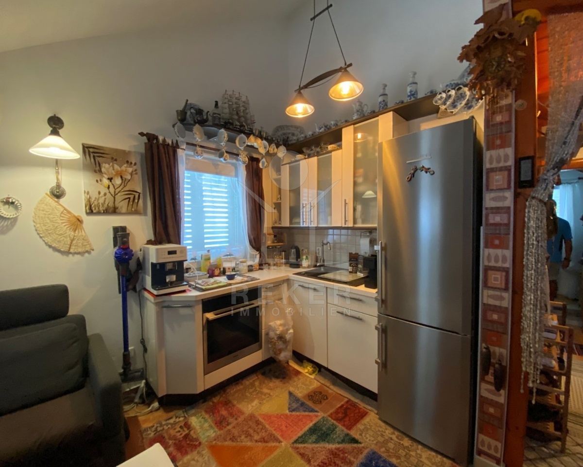 Die Dachgeschosswohnung befindet sich in einem Gebäude mit insgesamt 8 Wohnungen, das im Jahr 2008 gebaut wurde. Die Wohnung bietet modernen Komfort mit einer vollständigen Infrastruktur, Klimaanlage und sogar einem Holzofen für gemütliche Abende. Eine Zufahrt mit einem Parkplatz von 13 m² sorgt dafür, dass Sie bequem mit dem Auto anreisen und parken können.