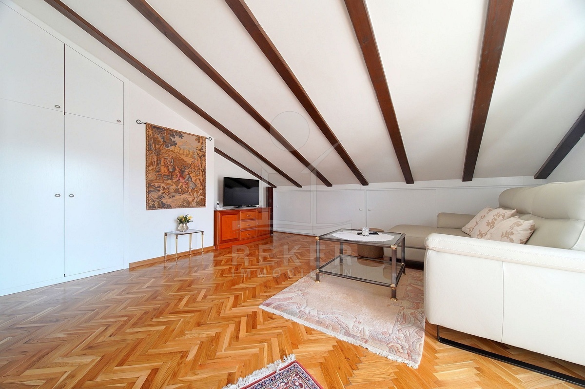 Das Apartment befindet sich im Dachgeschoss in einem gepflegten, Wohngebäude, das über Keller, Erdgeschoss und Obergeschoss verfügt. Die Wohnung wurde im Jahr 2023 renoviert und bietet somit modernen Komfort in einem charmanten Umfeld. Das Gebäude, das 1989 erbaut wurde, verfügt über stabile Blockziegelwände und Stahlbetondecken. Die drei Wohnparteien teilen sich das gut durchdachte Raumkonzept und die vertikale Kommunikation erfolgt über eine interne Treppe, die zum Dachgeschoss führt. Zusätzliche Merkmale wie die zentrale Gasheizung, Klimaanlage, 3-fach-Verglasung und Sonnenkollektoren sorgen dafür, dass die Wohnung sowohl im Sommer als auch im Winter eine angenehme Atmosphäre bietet.