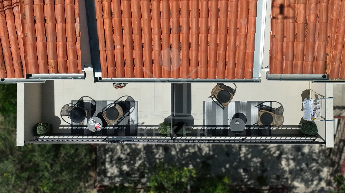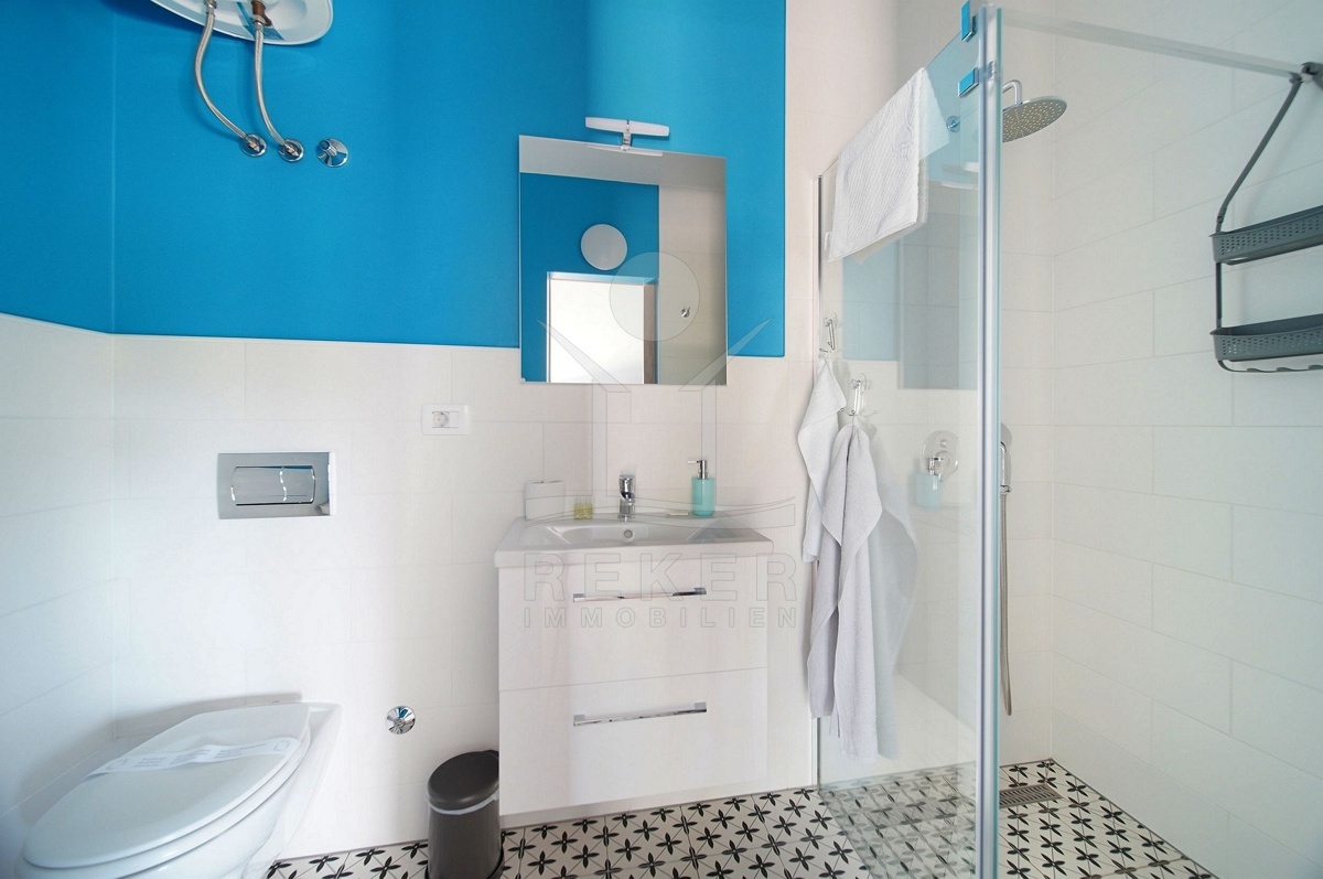 Die wundervolle Immobilie mit Wohnfläche von 76 m ² befindet sich in einem kleineren Gebäude und wurde 2020 vollständig renoviert. Über eine steinerne Treppe erreicht man den Eingang im 2. Stock. Das Apartment ist mit einem offenen Wohn-, Esszimmerbereich und Küche ausgestattet. Die nordwestliche Ausrichtung sorgt für viel natürliches Licht. Es gibt drei Schlafzimmer, jedes mit eigenem Badezimmer, sowie einen Balkon. Die Wohnung ist modern beleuchtet und wurde mit viel Liebe zum Detail eingerichtet. Ein wahrer Augenschmaus und eine Freude für jeden Bewohner. Außerdem verfügt die Immobilie über zwei Parkplätze.