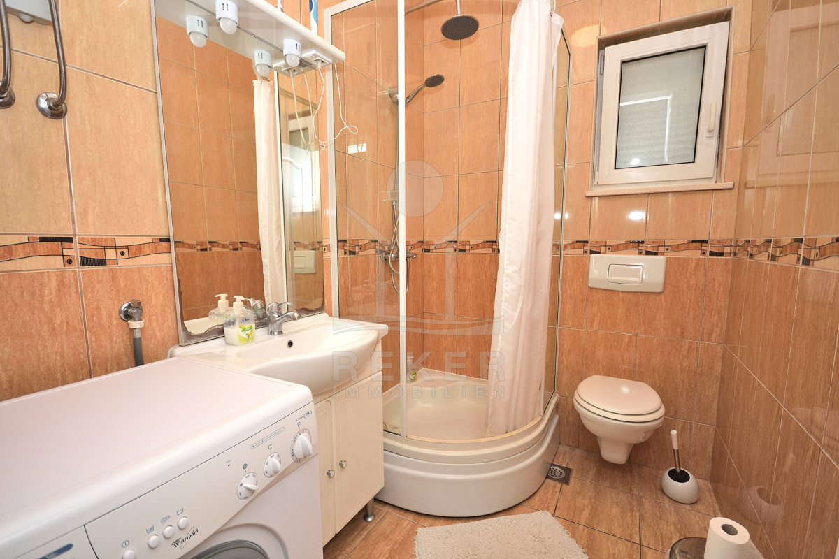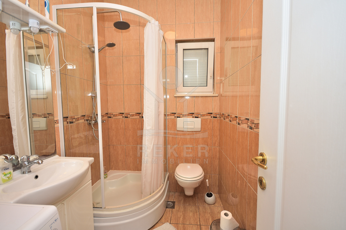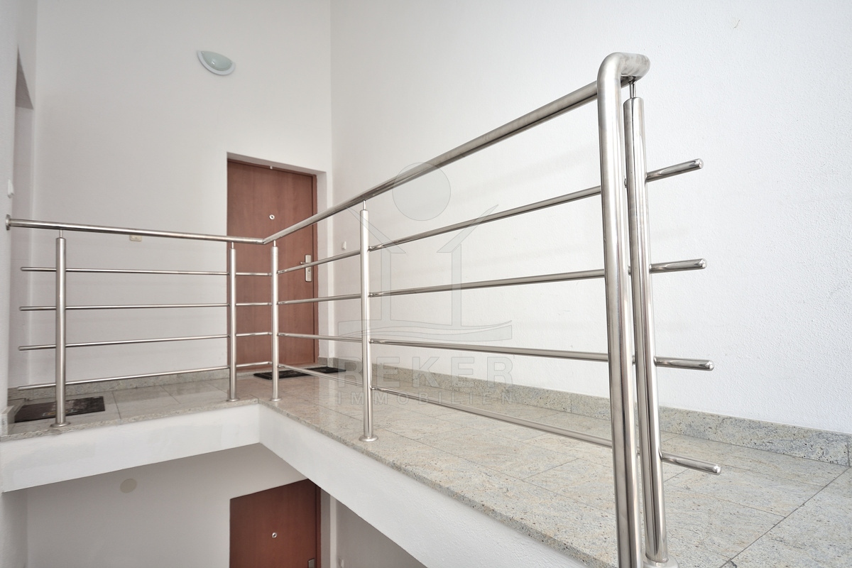 Diese Dachgeschosswohnung in Vodice richtet sich an Käufer, die Nähe zum Meer und eine gute Infrastruktur schätzen. Sie wohnen nur etwa 1.200 m vom Stadtzentrum entfernt. Viele Wege lassen sich schnell erledigen. Die Wohnung befindet sich im zweiten und obersten Geschoss eines gepflegten Gebäudes. Eine Asphaltstraße führt direkt dorthin. Ein Stellplatz im Innenhof gehört dazu. Gerade in dieser strandnahen Lage ein klarer Vorteil.