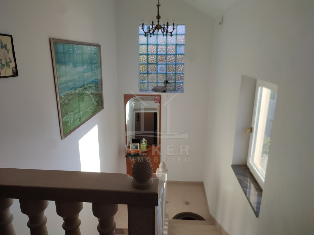 Eine gute Verkehrsanbindung, lediglich etwa 100 m vom Ortszentrum entfernt, zeichnet dieses tolle Haus aus. Es steht auf einem ca. 100 m² großen, von einer Mauer teilweise umrahmten Grundstück und beinhaltet eine Wohnfläche von geräumigen 250 m². Diese verteilt sich auf eine 40 m² große Garage im Erdgeschoss und 2 Obergeschosse.