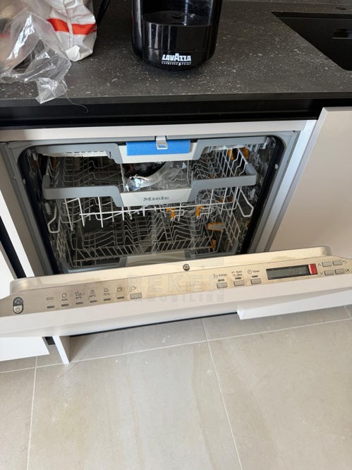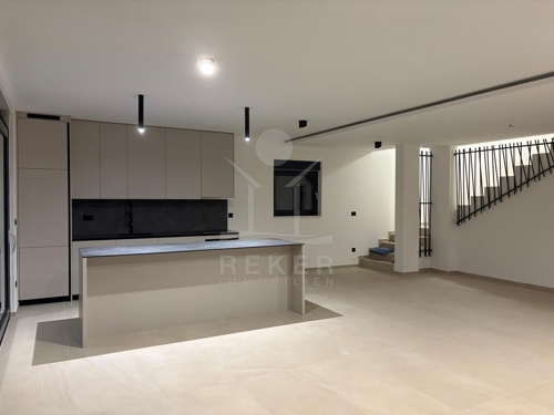 Mit 265 m² Wohnfläche auf drei Etagen bietet das Haus reichlich Platz. Im Erdgeschoss finden Sie einen hellen Wohn- und Essbereich mit moderner Küche, ein Schlafzimmer mit Bad en suite, ein Gäste-WC sowie einen Technik- und Abstellraum. Im Obergeschoss gibt es drei weitere Schlafzimmer, alle mit eigenem Bad und privater Terrasse. Auch hier öffnet sich Ihnen der Blick aufs Meer. Hochwertige Miele-Geräte, maßgefertigte Möbel und stimmungsvolle Beleuchtung von Prggin setzen klare Akzente in Sachen Wohnqualität.
