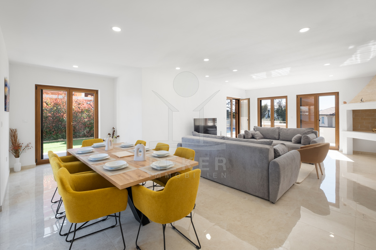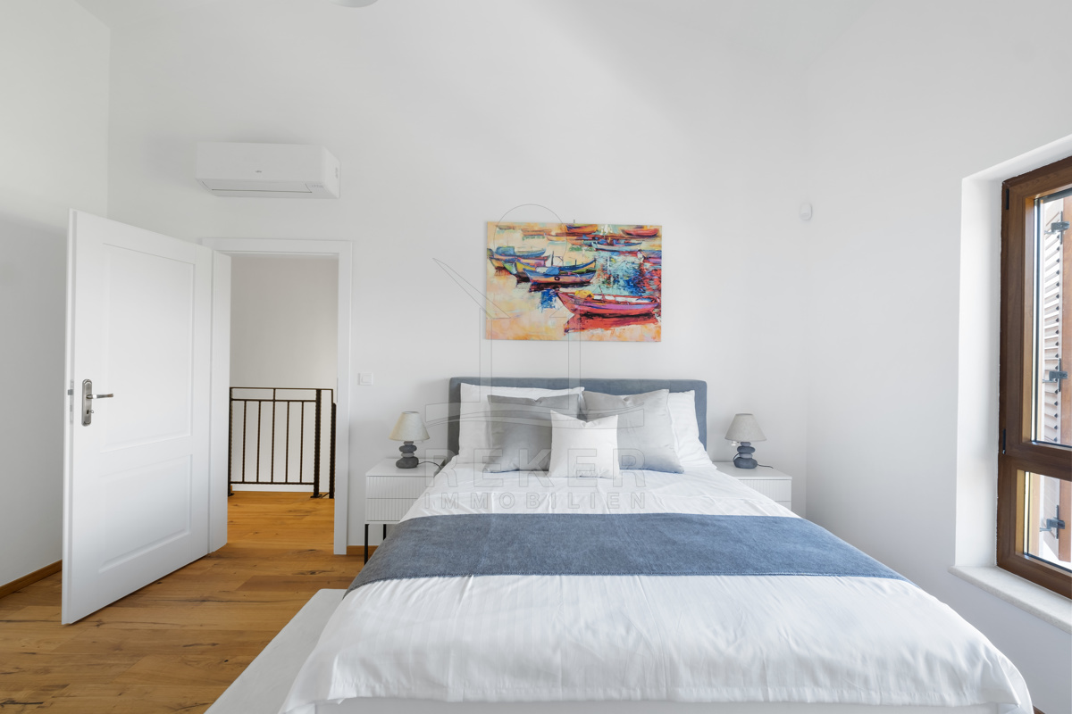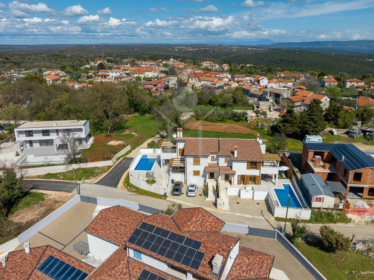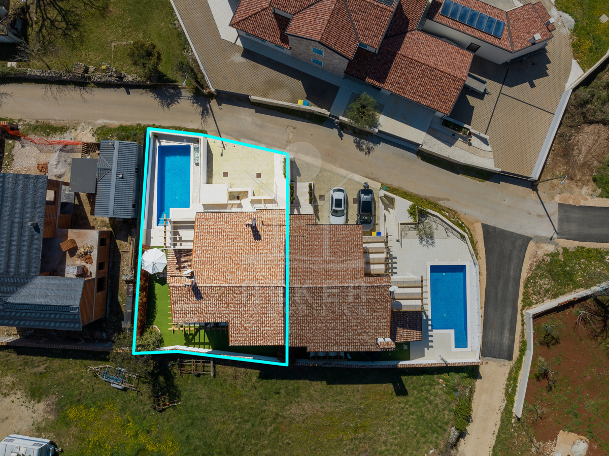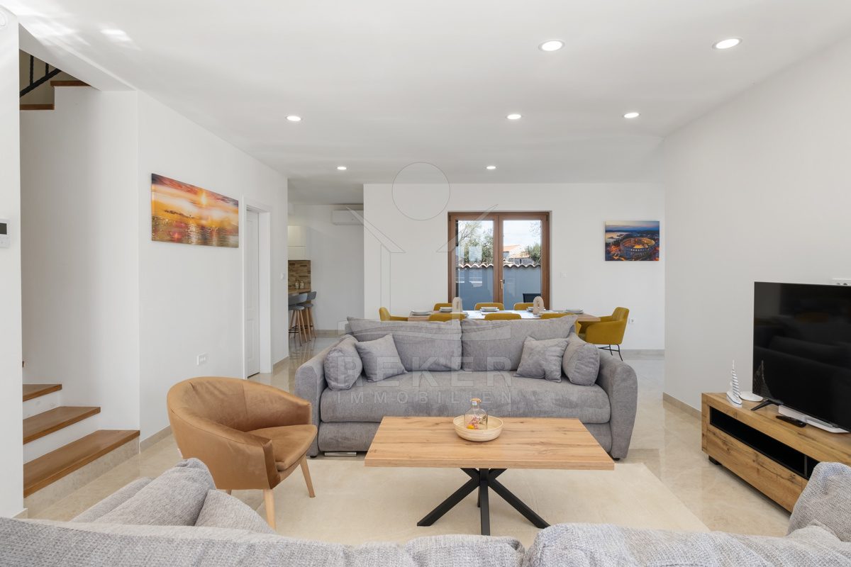 Am Rand von Kavran. Umgeben von Natur. Kein Lärm, keine Hektik. Die Doppelhaushälfte liegt in ruhiger Lage, südlich ausgerichtet. Das Meer? 1,7 Kilometer entfernt. Drei Stellplätze – direkt vor der Haustür.