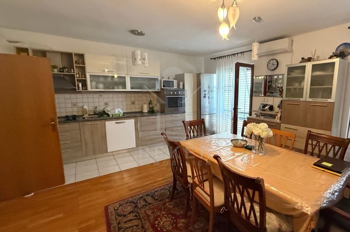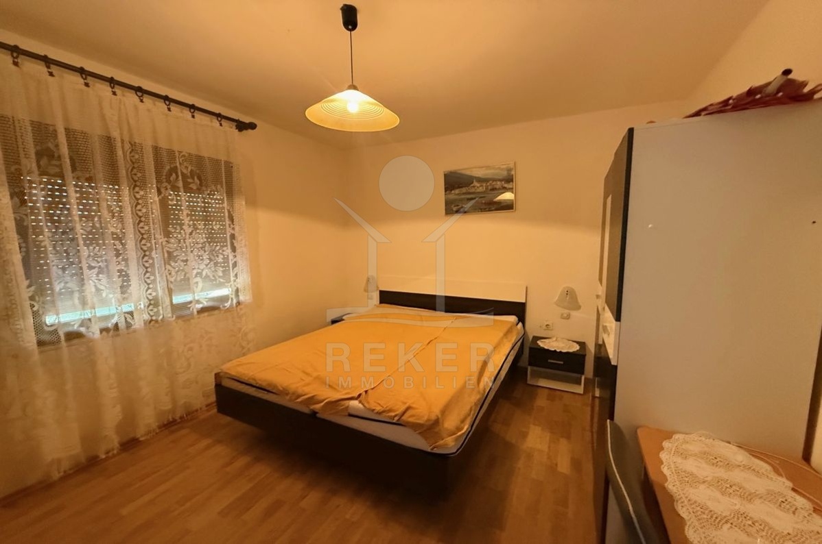 In der Stadt Krk, nur 350 Meter vom Meer und 600 Meter vom historischen Zentrum entfernt, wartet ein großzügiges Doppelhaus auf neue Bewohner. Die Lage verbindet Ruhe mit kurzer Distanz zu Strand, Restaurants und Einkaufsmöglichkeiten. Drei private Parkplätze direkt am Haus machen den Alltag unkompliziert. Das Grundstück umfasst 200 m². Es bietet einen gepflegten Garten und eine Terrasse im Erdgeschoss. Ein Ort zum Entspannen, aber auch für gesellige Stunden im Freien.
