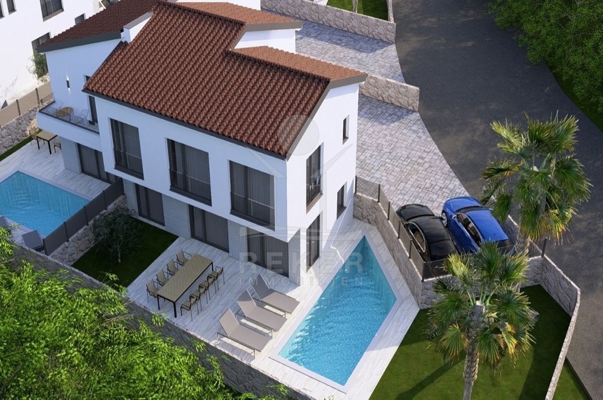 Auf der Insel Krk, im beliebten Ort Malinska, entsteht bis Ende 2025 ein modernes Doppelhaus. Es verbindet eine ruhige, grün bewaldete Umgebung mit kurzer Distanz zum Ortszentrum und zum Strand. Beides erreichen Sie nach rund 600 Metern. Zwei private Stellplätze direkt am Haus machen den Alltag bequem.