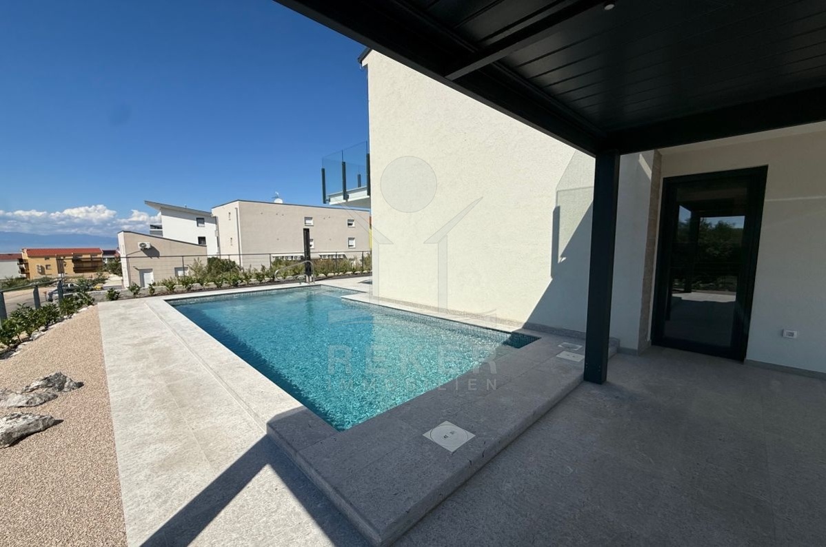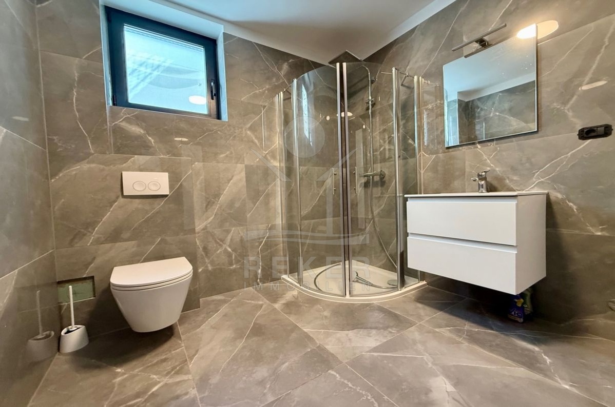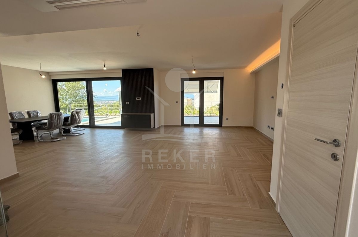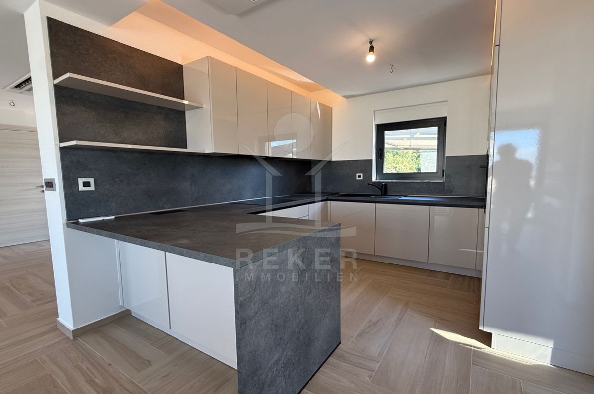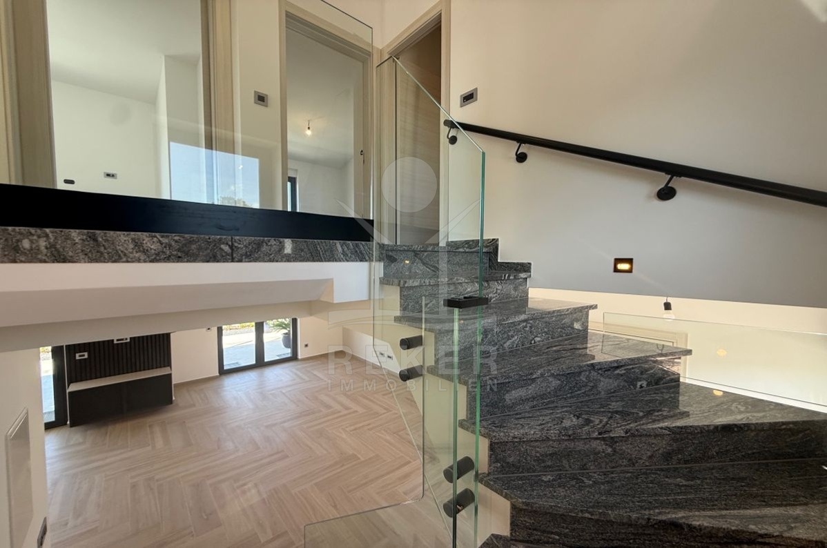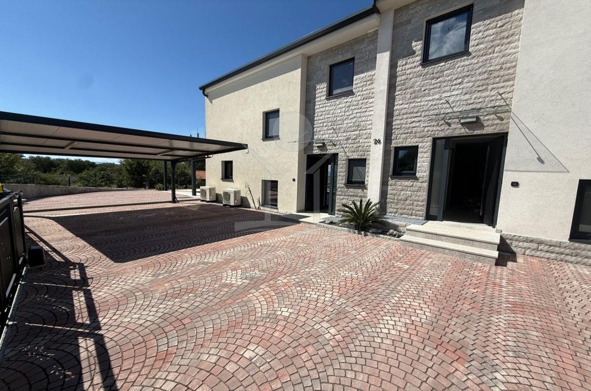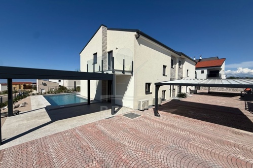 In Malinska auf der Insel Krk entsteht ein modernes Doppelhaus mit 193 m² Wohnfläche. Die Lage ist ruhig, das Meer nur 700 Meter entfernt. Hier genießen Sie Privatsphäre und zugleich kurze Wege. Zwei überdachte Stellplätze direkt am Haus machen den Alltag unkompliziert.