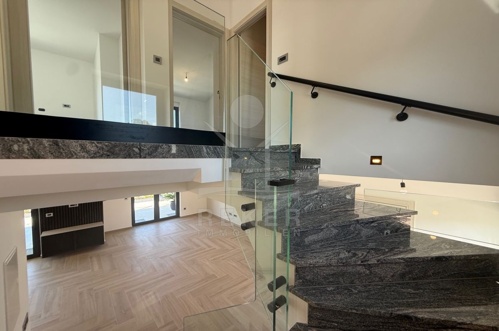 Die Ausstattung ist hochwertig: Fußbodenheizung, Wärmepumpe, Klimaanlage und edle Sanitärkeramik sorgen für Wohnkomfort zu jeder Jahreszeit. Aluminium-Fenster mit Rollläden, stilvolle Böden und die klare Architektur runden das Bild ab. Ein Haus, das moderne Technik mit durchdachter Aufteilung verbindet. Dazu kommen Meerblick, Ruhe und kurze Wege zum Strand.