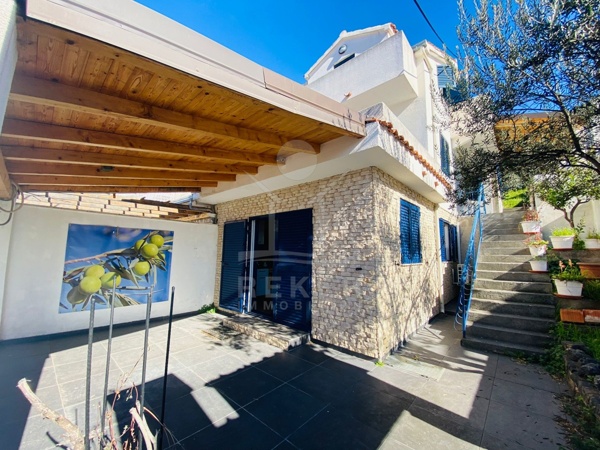 Das Anwesen erstreckt sich über 3 Etagen auf einem 238 m² großen Grundstück in der Hanglage. Die mediterrane Gestaltung mit einheimischer Vegetation und Olivenbäumen verleiht dem Grundstück ein besonderes Flair. Die Doppelhaushälfte wurde umfangreich renoviert und saniert, zuletzt im Jahr 2022 mit Erneuerungen an Wasserleitungen, Stromleitungen, Elektroinstallationen, Küche, Badezimmern und Fußböden. Die Terrasse und Balkone wurden 2010 neu gefliest und mit einer Überdachung aus Massivholz versehen, inklusive Außengrill und Sommerküche.