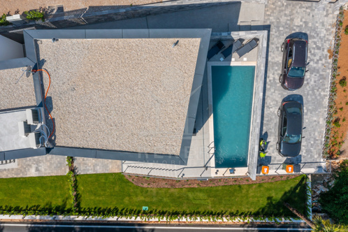 Freuen Sie sich auf sorgenfreie Harmonie im 29 m² großen Pool. Genuss in Vollendung lässt sich hervorragend auf der überdachten Terrasse genießen.