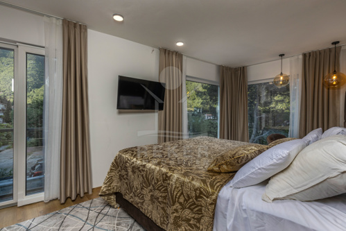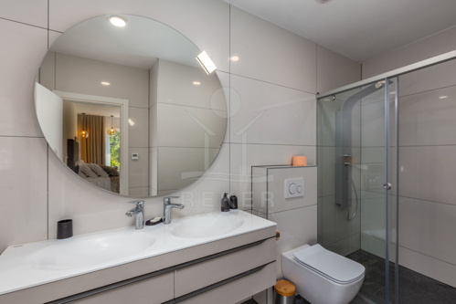 Im Obergeschoss finden Sie das Reich der Träume. Jedes der drei Schlafzimmer hat ein eigenes Bad. Die gesamte Villa ist modern und geschmackvoll eingerichtet und wird mit einer Wärmepumpe geheizt und gekühlt.