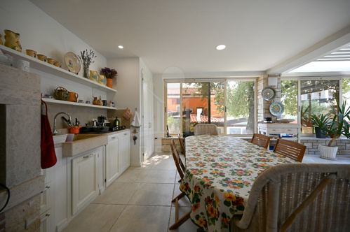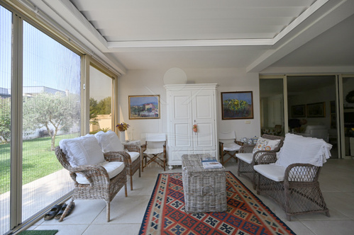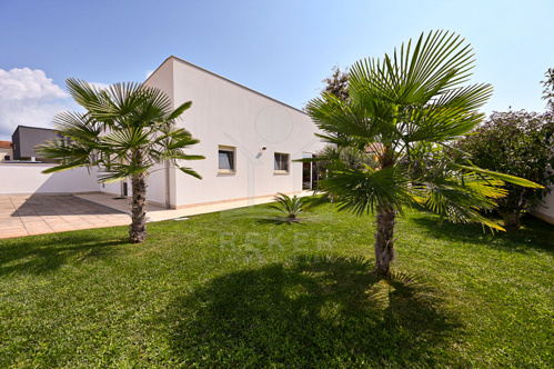Das Grundstück umfasst 420 m². Auf 300 m² mediterranem Garten wachsen Olivenbäume, Palmen und gepflegter Rasen. Hier haben Sie Platz zum Entspannen oder für gesellige Stunden. Ein besonderes Highlight ist die geschlossene Terrasse mit Biopergola und Atrium. Sie lässt sich unabhängig vom Wetter nutzen und vielseitig gestalten. Ergänzt wird das Angebot durch eine Sommerküche für Abende im Freien und ein Gartenhaus.