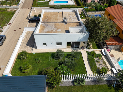 In einem ruhigen und sonnigen Teil von Novigrad steht dieses charmante Doppelhaus aus dem Jahr 2020. Mit 95 m² Wohnfläche bietet es Wohnen auf einer Ebene. Praktisch für Paare, Senioren oder alle, die barrierarm leben möchten. Zwei Stellplätze im umzäunten Hof machen das Parken bequem und sicher.