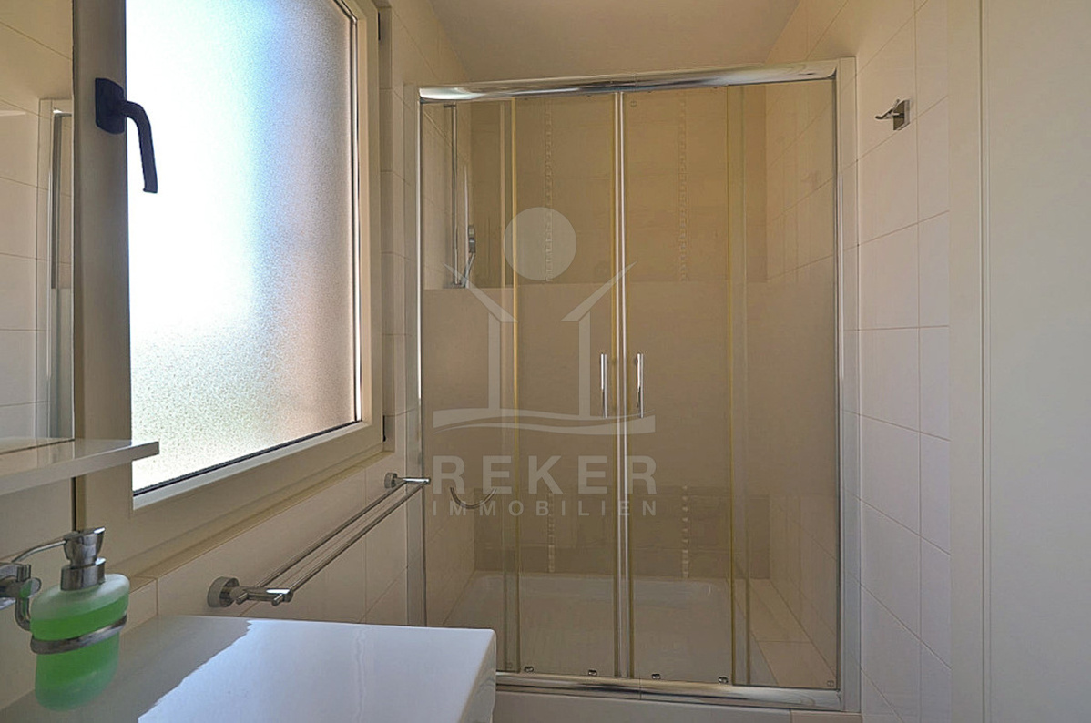 Das Haus erstreckt sich über zwei Etagen. Im Erdgeschoss: ein geräumiges Wohnzimmer, Küche, Abstellraum und ein Bad mit Dusche – samt integrierter Sauna, die auch von außen zugänglich ist. Ideal nach dem Sport oder einem Tag am Meer. Oben befinden sich drei Schlafzimmer mit eigenem Bad. Ein Balkon mit Weitblick ergänzt das Obergeschoss. Klimaanlage, voll ausgestattete Küche, Einbauschränke und Sicherheitstür sind ebenfalls vorhanden. Einziehen und wohlfühlen.