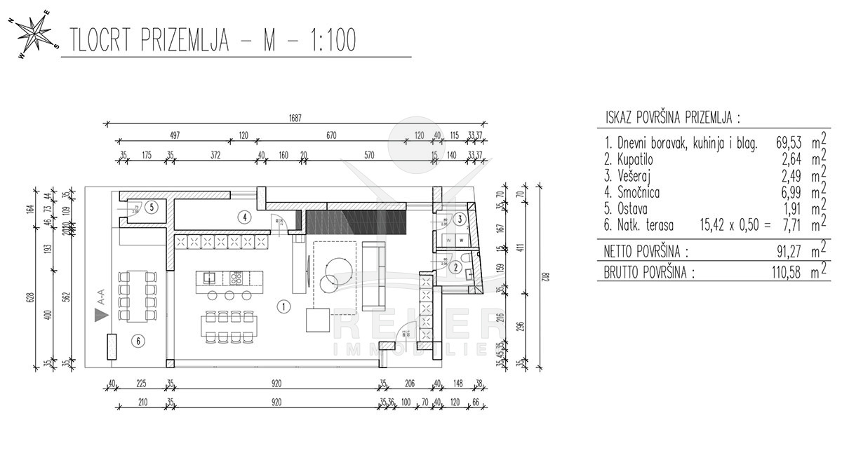 Die Wohnung verfügt sowohl über eine Klimaanlage als auch über eine Fußbodenheizung und bietet auf zwei Etagen viel Platz und Komfort. Im Erdgeschoss erwartet Sie eine geräumige Küche, Gäste-WC, eine Waschküche, eine Speisekammer, ein Esszimmer und ein wunderschönes Wohnzimmer mit Zugang zu einer überdachten Terrasse mit Sommerküche - perfekt zum Entspannen und gemeinsamen Mahlzeiten.