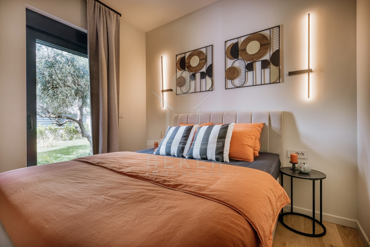 Die Ausstattung sorgt für Komfort das ganze Jahr über. Fußbodenheizung, Klimaanlage und Kamin schaffen ein angenehmes Raumklima. Aluminiumfenster und -türen, eine Sicherheitstür, Videoüberwachung sowie Satelliten-TV und Internet runden den hohen Standard ab. Dank Energieeffizienzklasse A+ wohnen Sie nachhaltig und mit niedrigen Betriebskosten. Dieses Haus verbindet modernen Komfort mit der Nähe zum Meer. Ob als Familienwohnsitz, Feriendomizil oder Investment, die Immobilie in Poreč überzeugt mit vielen Möglichkeiten.