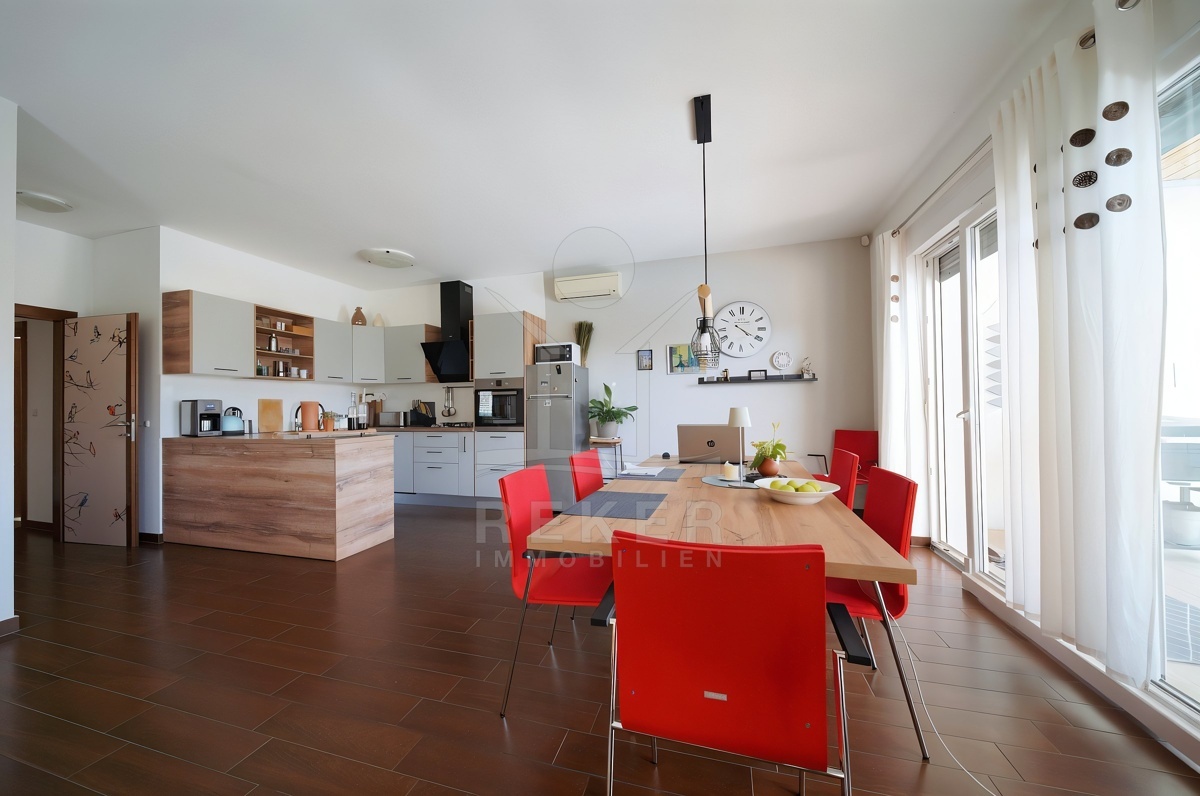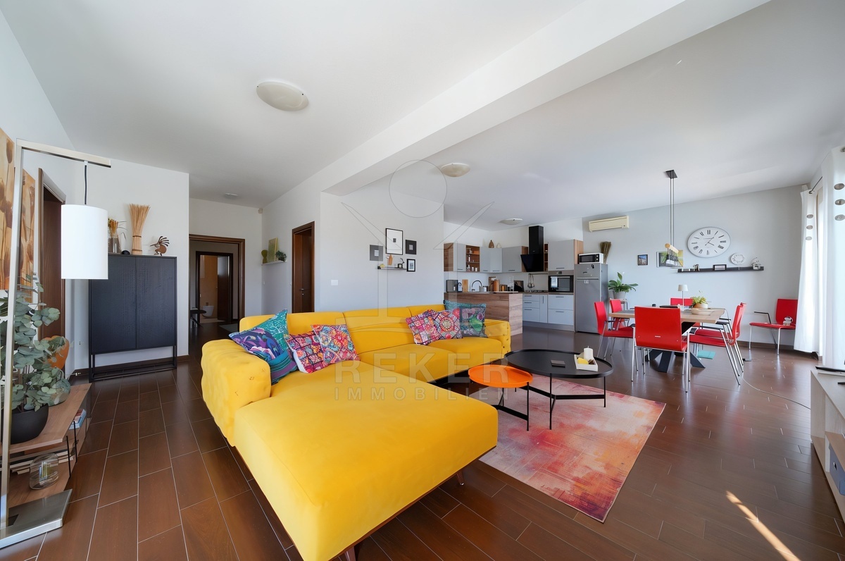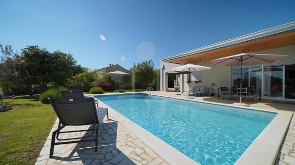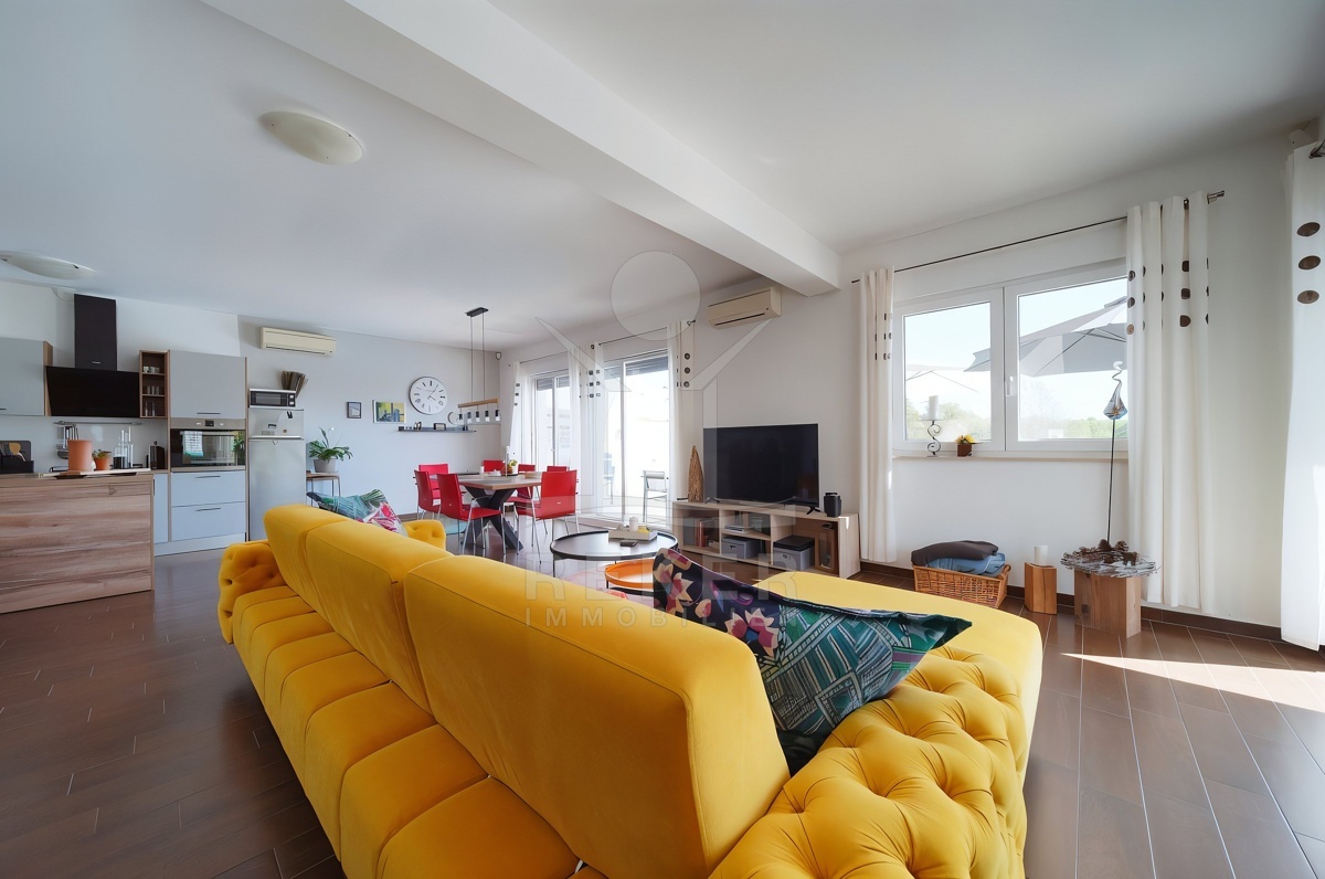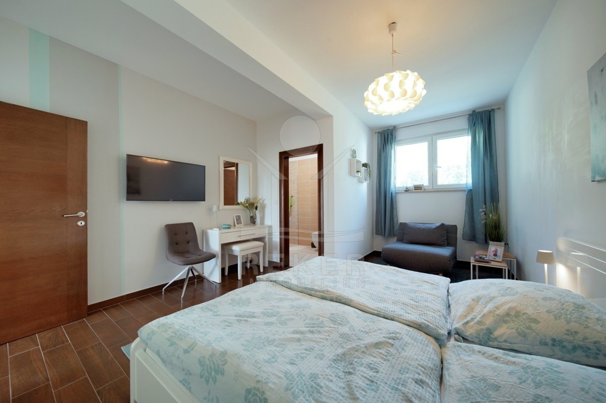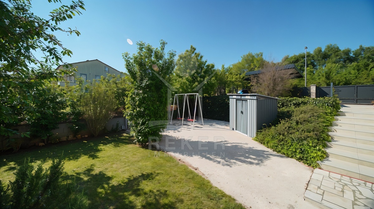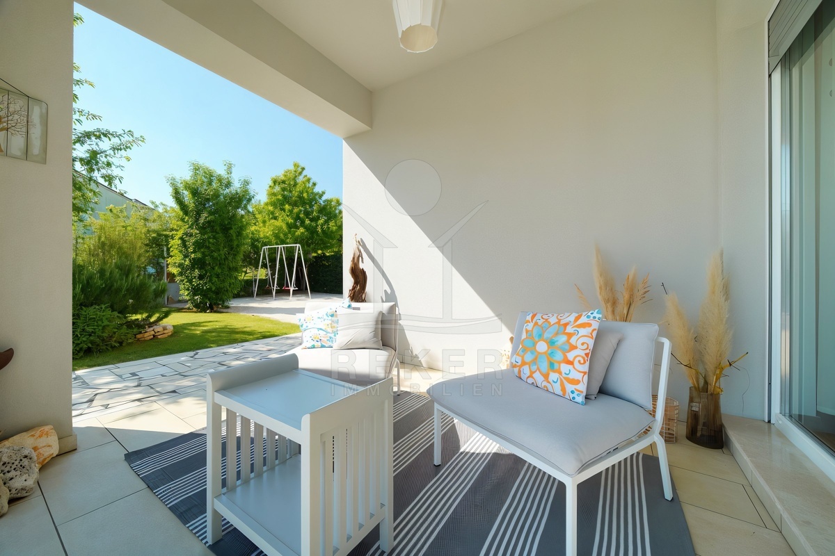 Am ruhigen Dorfrand, nur wenige Kilometer von Rovinj entfernt, steht dieses moderne Duplexhaus mit 140 m² Wohnfläche. Es verbindet Ruhe mit Nähe zur Stadt. Ein Geschäft liegt nur 100 Meter entfernt, Restaurants und eine Schule erreichen Sie nach etwa 4 Kilometern. Bis Rovinj sind es 10 Kilometer, zum Meer und zu den Stränden 11 Kilometer. Zwei überdachte Stellplätze, ein motorisiertes Schiebetor und die Einfriedung sorgen für Sicherheit und Komfort.