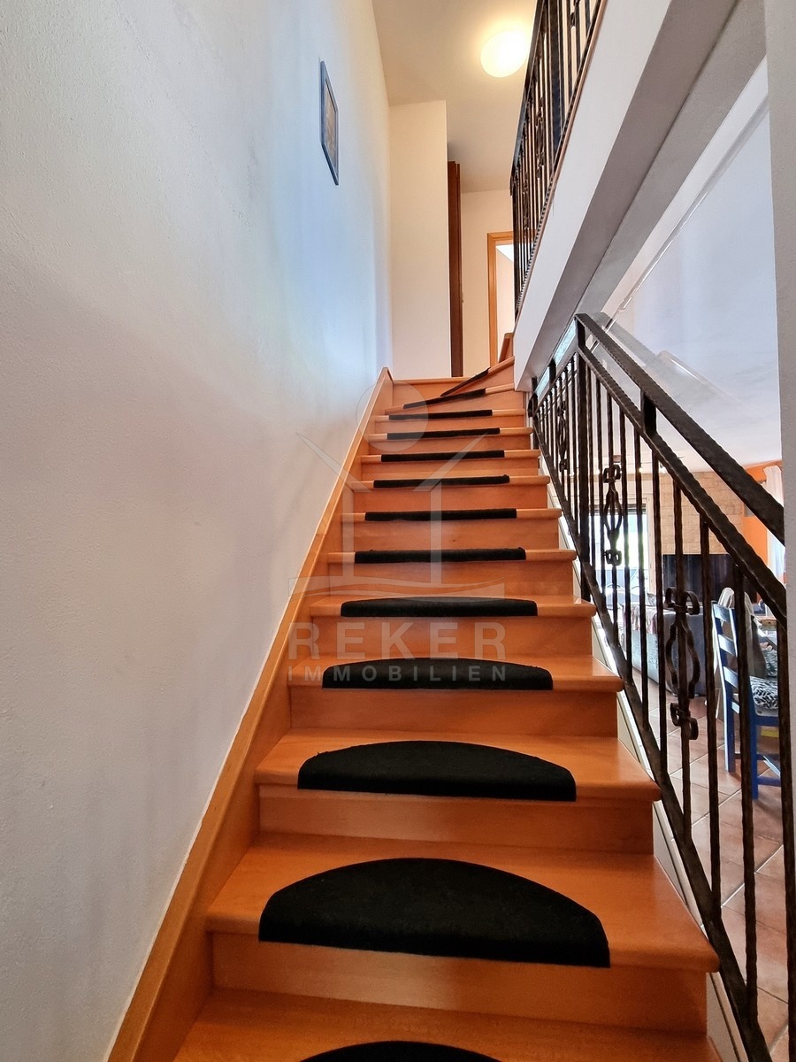 Die inneren Treppen führen in das Obergeschoss, wo sich 3 gemütliche Schlafzimmer befinden. Ein geräumiges Badezimmer rundet dieses Stockwerk ab und bietet ausreichend Platz für die ganze Familie. Hier entsteht eine harmonische Wohnatmosphäre, in der sich jeder wohlfühlen kann.