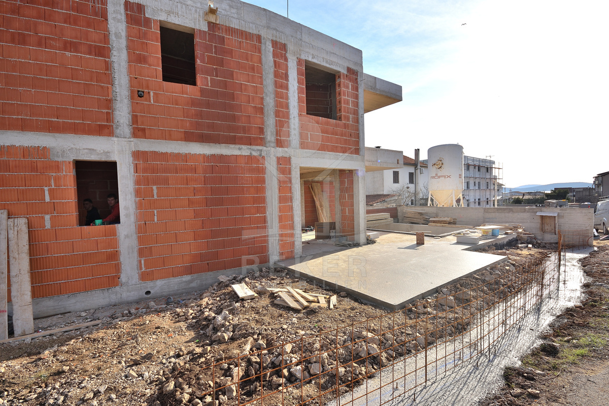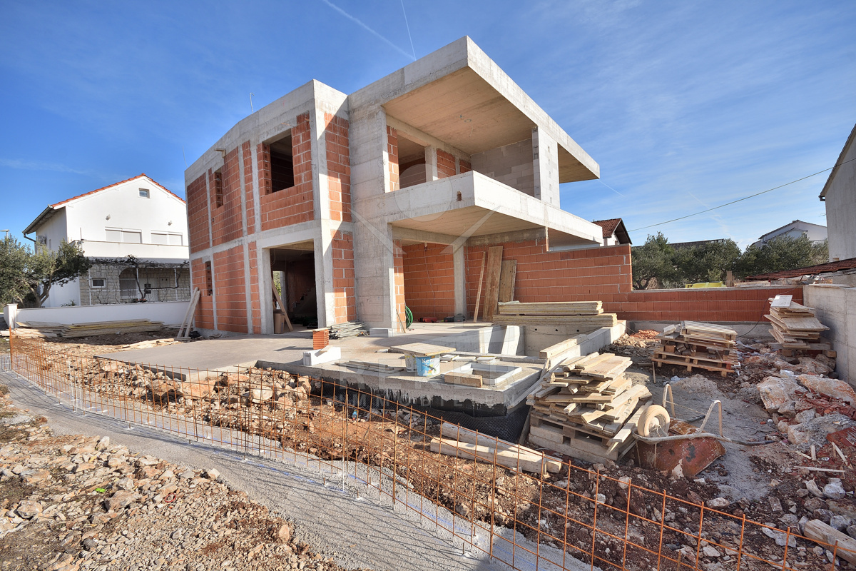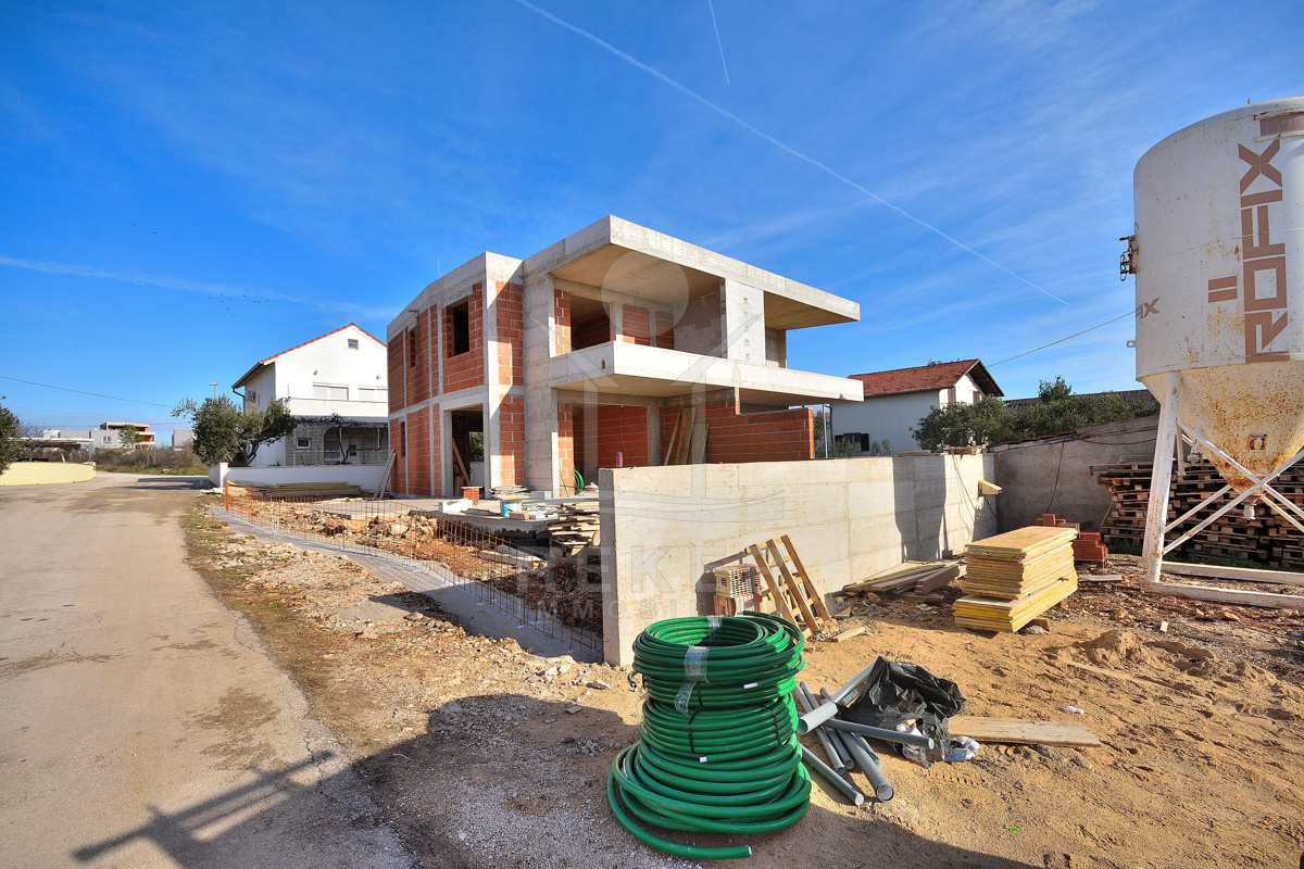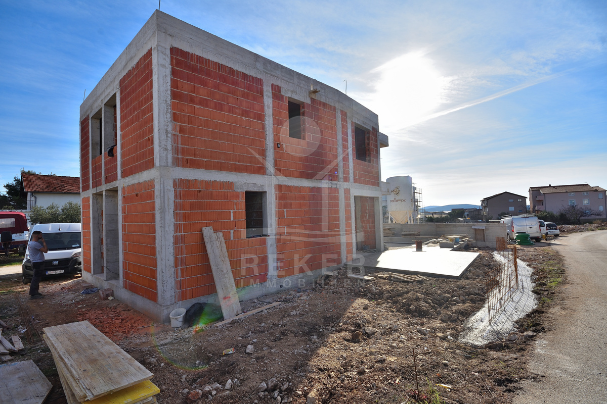 In ruhiger Wohnlage von Vodice entsteht eine moderne Doppelhaushälfte, nur wenige Gehminuten vom Zentrum und vom Strand entfernt. Die Umgebung mit gepflegten Einfamilienhäusern und mediterranem Grün vermittelt ein angenehmes Wohngefühl. Wer Ruhe sucht und trotzdem nicht auf kurze Wege zu Geschäften, Restaurants und der Promenade verzichten möchte, findet hier das passende Zuhause. Zwei private Stellplätze stehen direkt am Haus zur Verfügung. Die Fertigstellung ist für Ende 2026 vorgesehen. Wer früh entscheidet, sichert sich ein stilvolles Zuhause mit Pool, Garten und kurzer Distanz zum Meer.