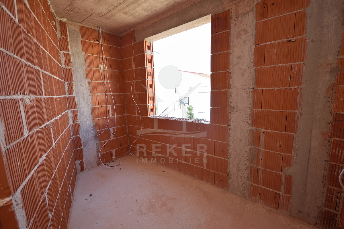 Der Neubau wird nach modernen Baustandards errichtet. Zur Ausstattung gehören PVC-Fenster mit Aluminium-Rollläden und elektrischem Antrieb, Klimaanlagen in allen Schlafzimmern und im Wohnzimmer sowie Fußbodenheizung in den Badezimmern und im Wohnbereich. So genießen Sie das ganze Jahr über angenehmen Komfort.