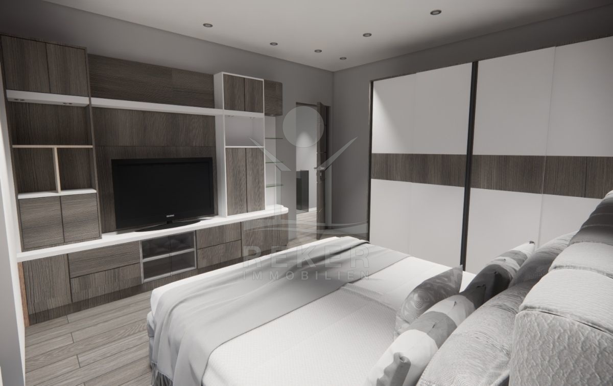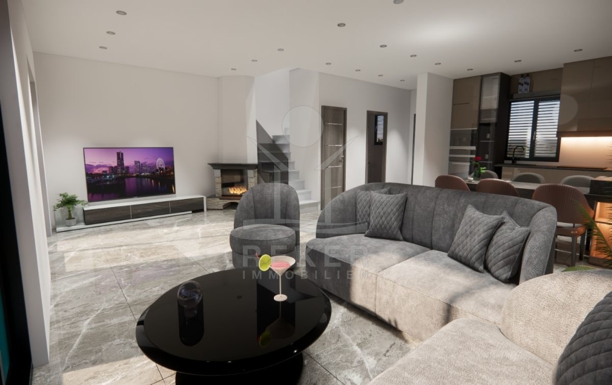 Das Wohnobjekt, umrahmt von einer Steinmauer, befindet sich auf einem Grundstück von 300 m². Die Wohnung ist ein Neubau, mit Wohnfläche von 117 m² wird voraussichtlich Ende 2023 fertiggestellt sein. Außerdem sind auch Parkplätze vorhanden, um sicherzustellen, dass Sie oder Ihre Besucher immer einen bequemen Parkplatz haben.