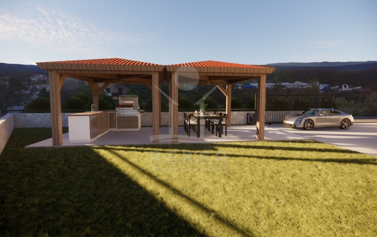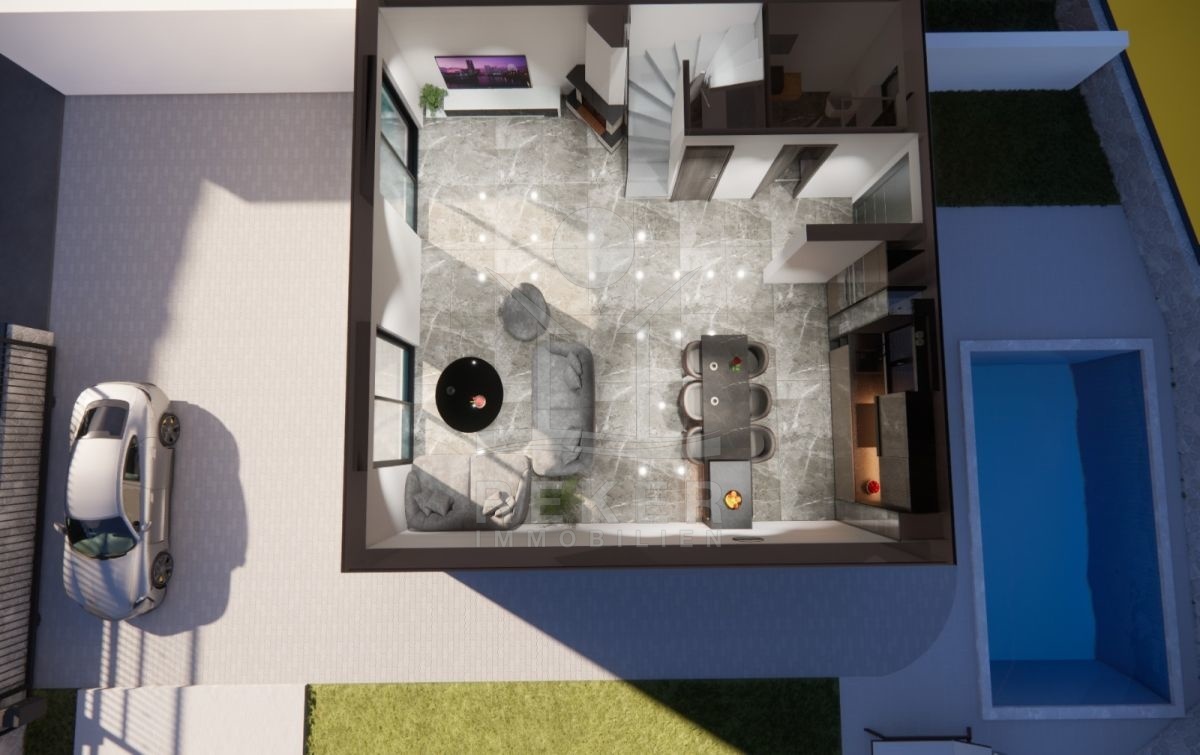 HOCHMODERNE ARCHITEKTUR IN RUHIGER LAGE: NEUE DOPPELHAUSHÄLFTE MIT AUSSENKÜCHE UND POOL IN VRBNIK