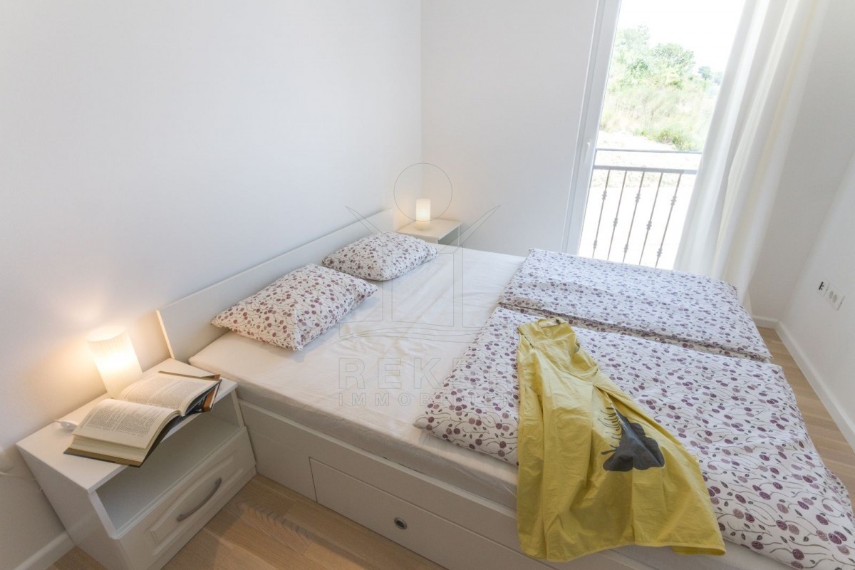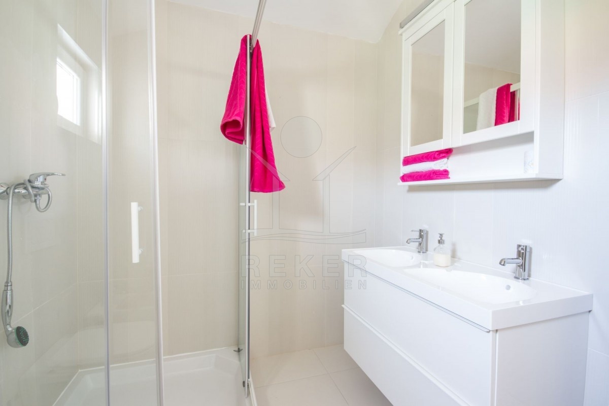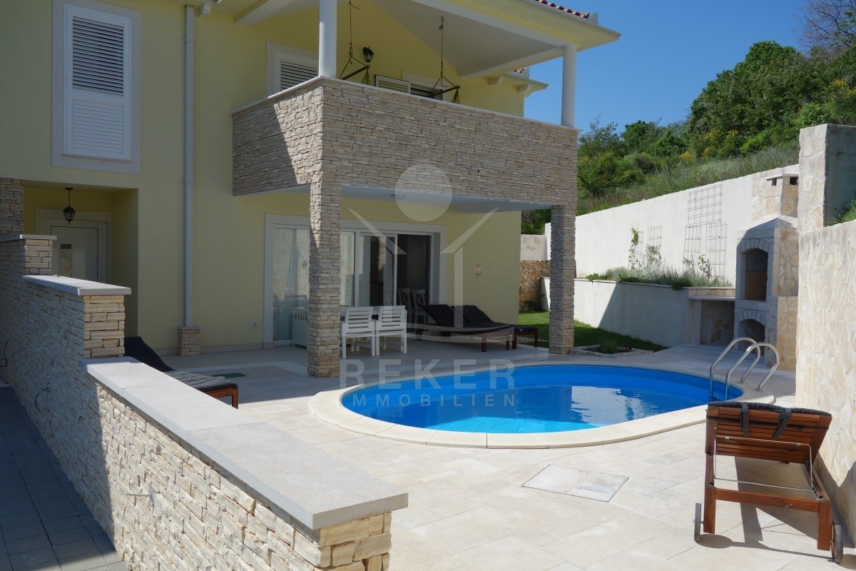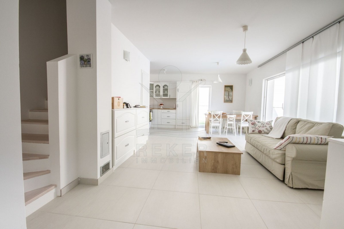 Diese idyllische Doppelhaushälfte in der Nähe von Baška bietet Ruhe und Erholung und ist umgeben von einer grünen und unberührten Landschaft mit einem traumhaften Blick auf das Meer und die umliegenden Berge. Die Lage ist ideal, um dem Alltagsstress zu entfliehen. Die Entfernung zum nächsten Strand beträgt nur 1200 m und bietet demnach auch Strandliebhabern alle Möglichkeiten, einen Tag in der Natur zu verbringen. Wenn Sie die Umgebung weiter erkunden möchten, sind es von hier aus nur wenige Kilometer zum lebhaften Baška mit seinen zahlreichen Restaurants, Bars und Cafés. Hier können Sie das mediterrane Flair genießen und den Tag ausklingen lassen.