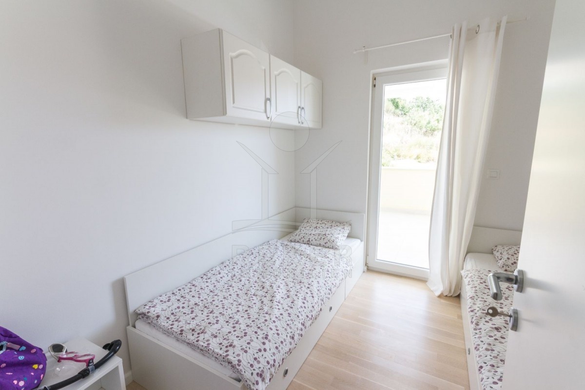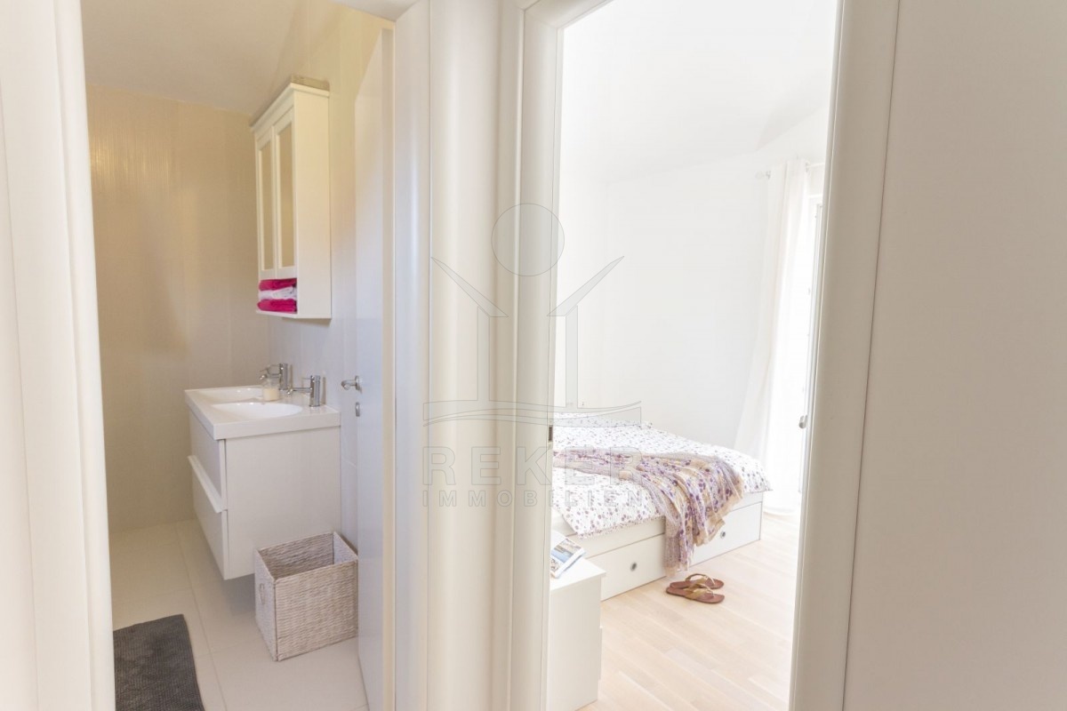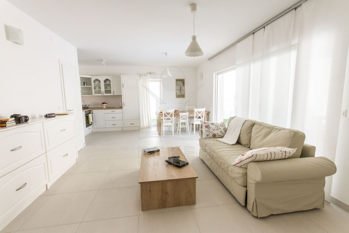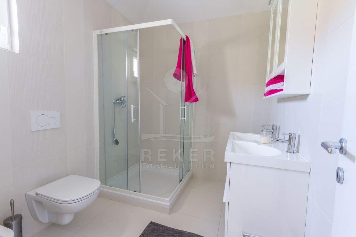 Diese idyllische Doppelhaushälfte in der Nähe von Baška bietet Ruhe und Erholung und ist umgeben von einer grünen und unberührten Landschaft mit einem traumhaften Blick auf das Meer und die umliegenden Berge. Die Lage ist ideal, um dem Alltagsstress zu entfliehen. Die Entfernung zum nächsten Strand beträgt nur 1200 m und bietet demnach auch Strandliebhabern alle Möglichkeiten, einen Tag in der Natur zu verbringen. Wenn Sie die Umgebung weiter erkunden möchten, sind es von hier aus nur wenige Kilometer zum lebhaften Baška mit seinen zahlreichen Restaurants, Bars und Cafés. Hier können Sie das mediterrane Flair genießen und den Tag ausklingen lassen.