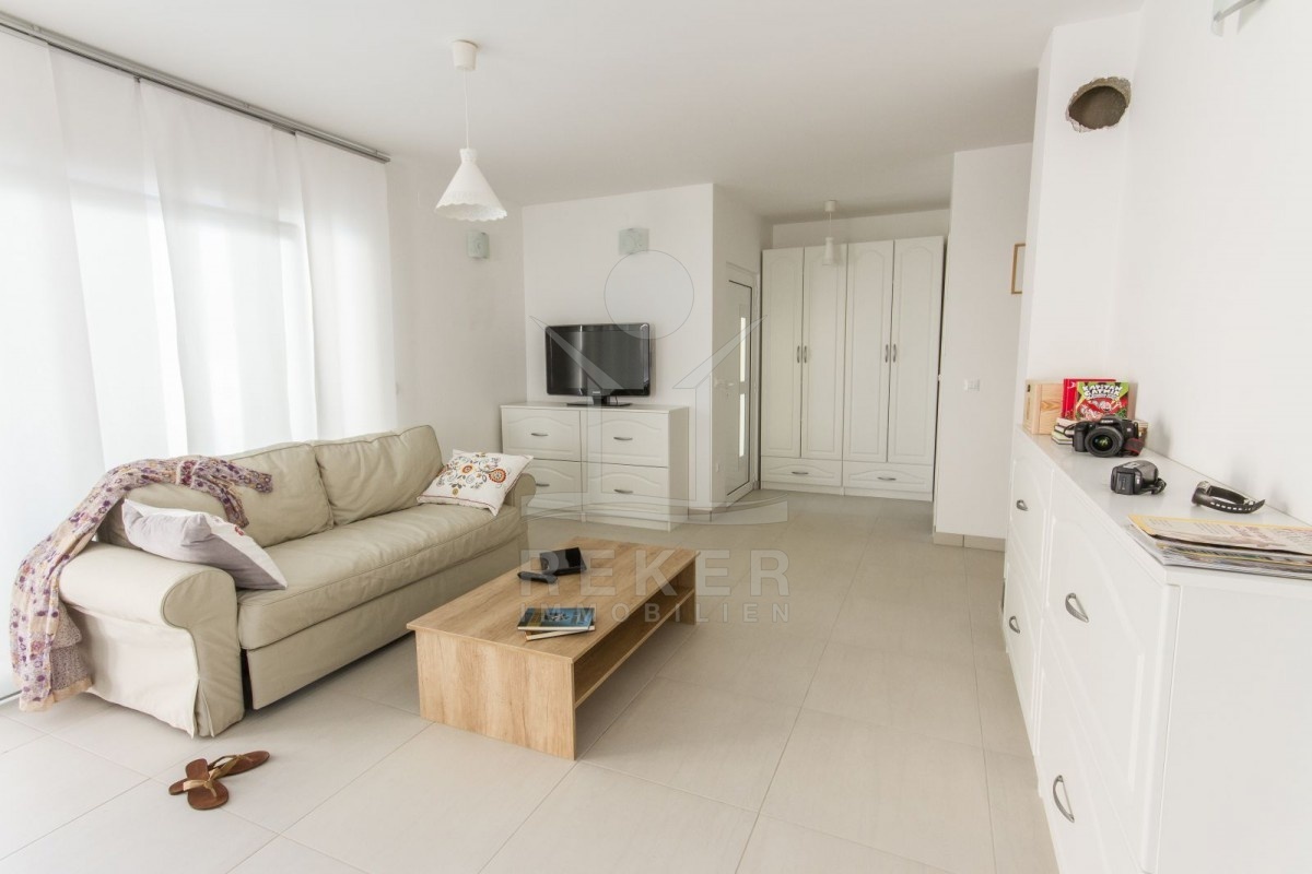 Die komplett möblierte Wohnung bietet ein komfortables Wohngefühl dank der Fußbodenheizung im Erdgeschoss und in allen Sanitärräumen. Im Erdgeschoss erwartet Sie ein geräumiges Wohnzimmer sowie eine moderne Küche mit Esszimmer, eine Toilette und einen Abstellraum.