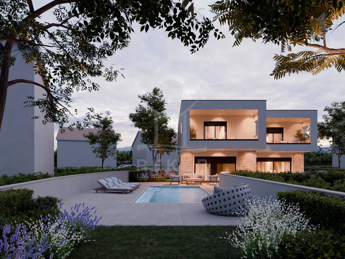 MEDITERRANES WOHNEN DIREKT AM MEER: NEUBAU-DHH (S2) MIT POOL UND TERRASSE BEI ŠIBENIK