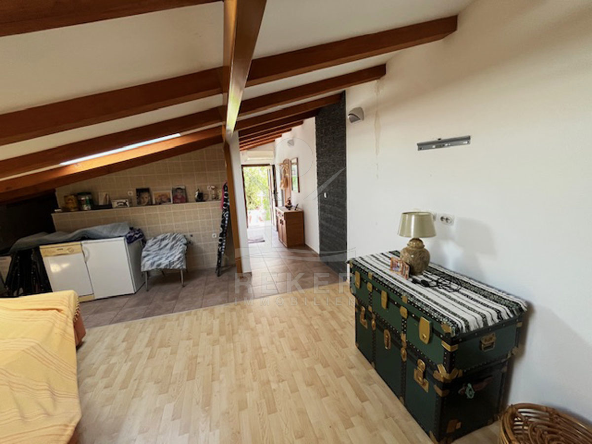 Im Dachgeschoss erwartet Sie ein großes Zimmer, das vielseitig genutzt werden kann, sowie ein weiteres Badezimmer. Der Balkon bietet einen herrlichen Blick auf die gesamte Küste und ist der perfekte Ort, um den Sonnenuntergang zu genießen.