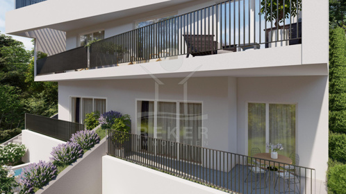 Die Terrassen sind nach Westen ausgerichtet. So erleben Sie jeden Abend Sonne und Weitblick. Ein stimmungsvoller Ausklang des Tages. Im geschützten Innenhof des Untergeschosses befindet sich Ihr privater Swimmingpool. Ein Bereich für ungestörte Stunden im Freien.