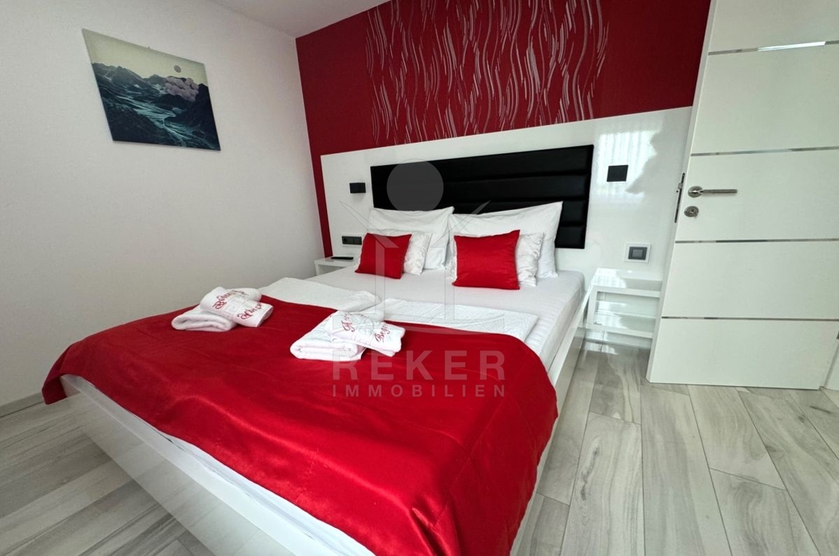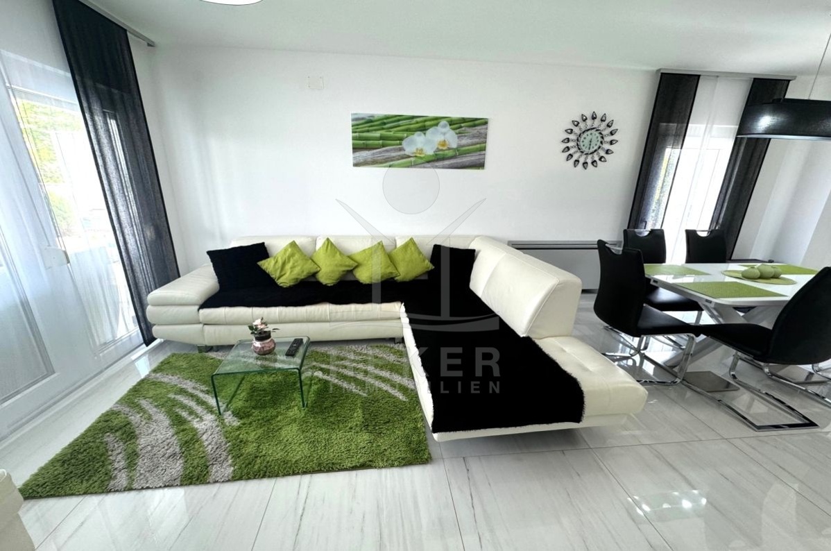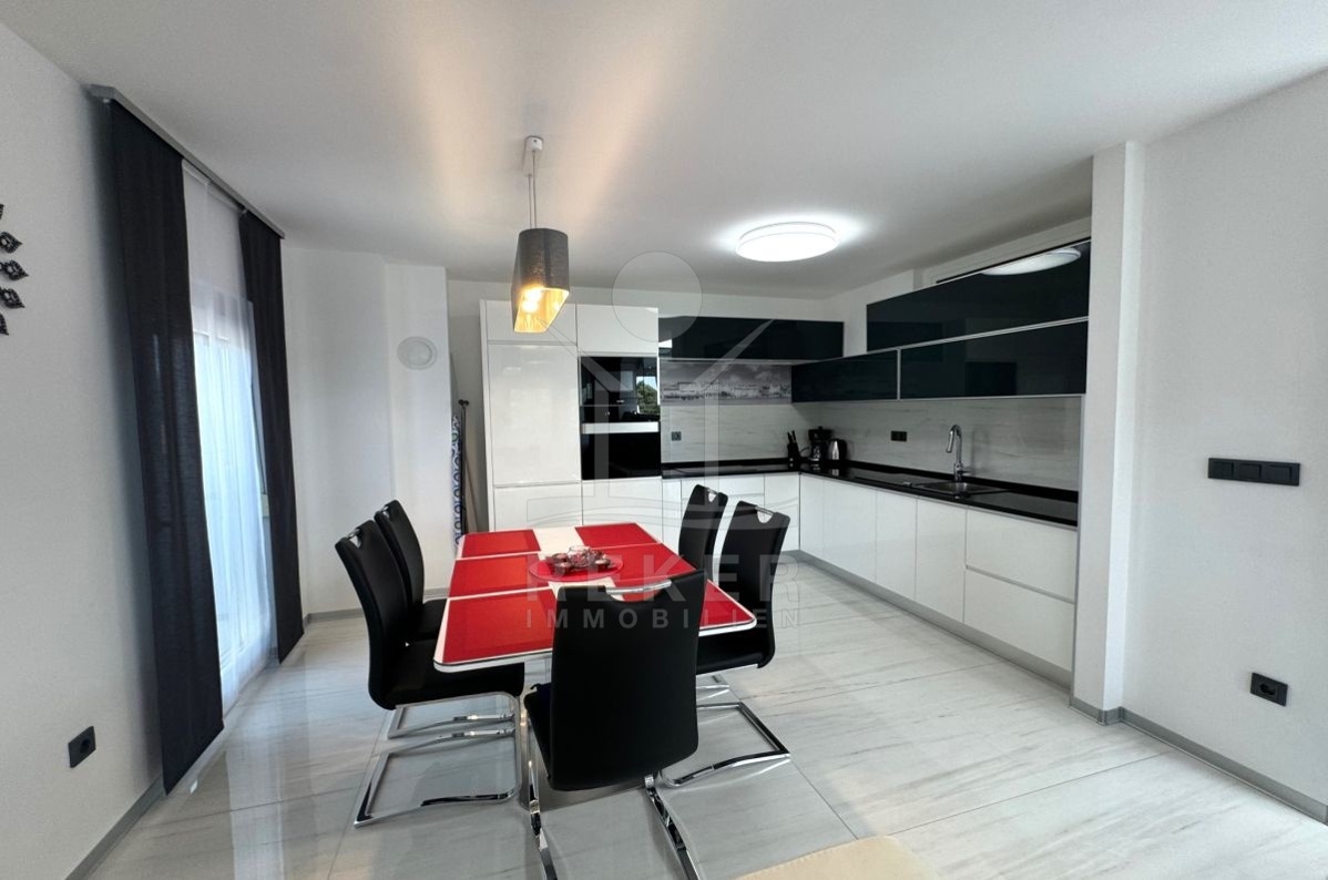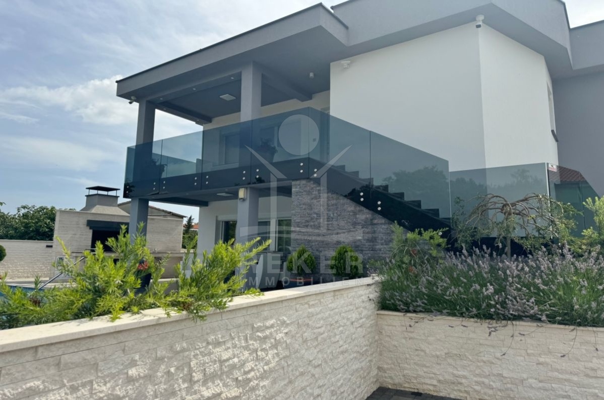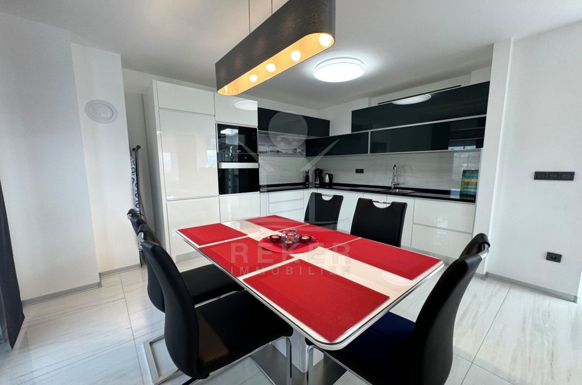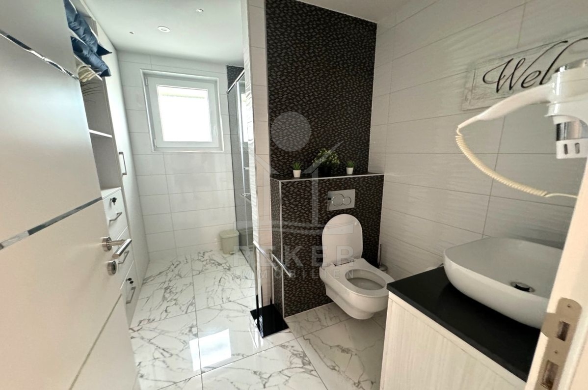 Die Villa erstreckt sich über einen umzäunten 627 m² großen Teil des Grundstücks und beeindruckt mit einer modernen Außenanlage. Das zweistöckige Gebäude beherbergt zwei separate Wohnungen mit gehobenem Standard und exklusiver Ausstattung. Das Neubau-Anwesen bietet ein Untergeschoss mit einer Taverne und Wellnessbereich für ultimativen Komfort und Entspannung. Mit zwei Parkplätzen direkt vor der Tür ist dieses Haus nicht nur ein Ort des Luxus, sondern auch der Bequemlichkeit für Ihre Lebensweise.