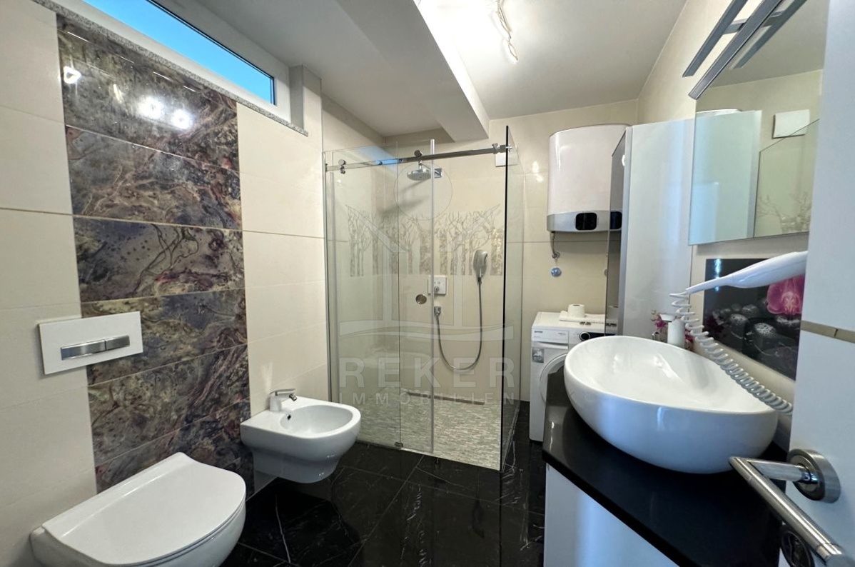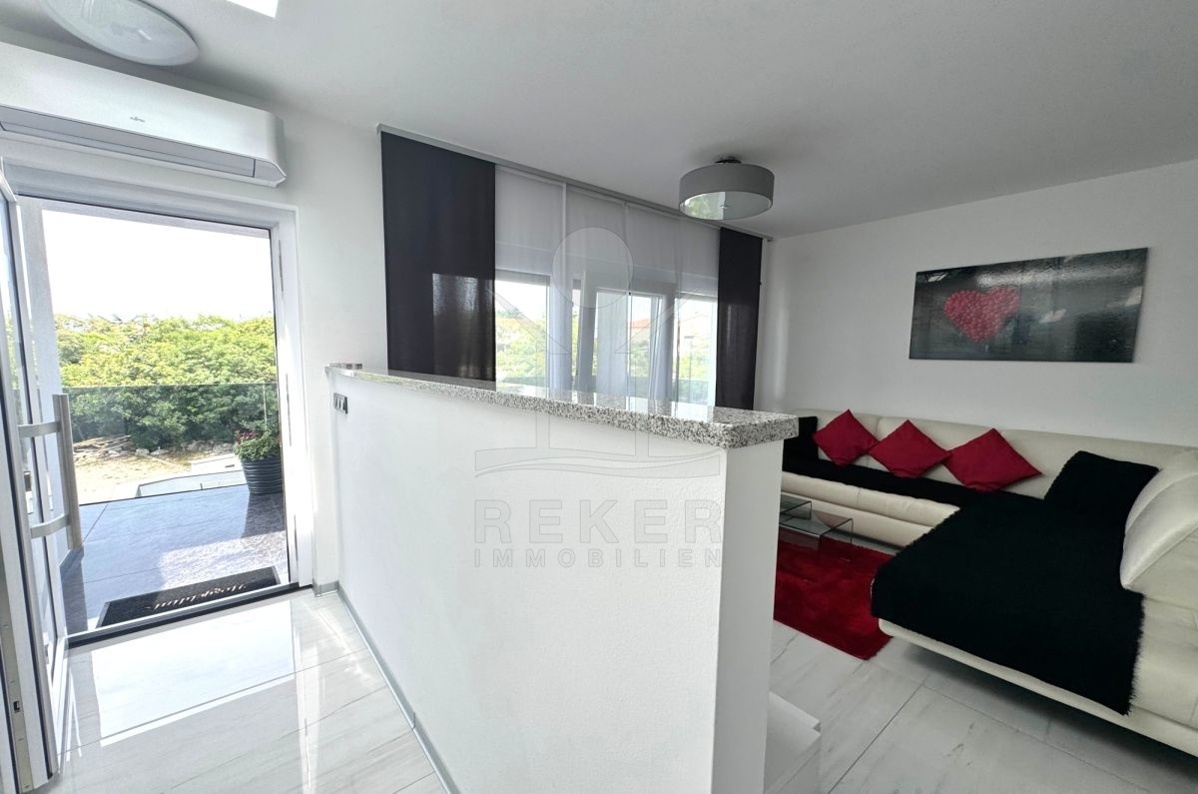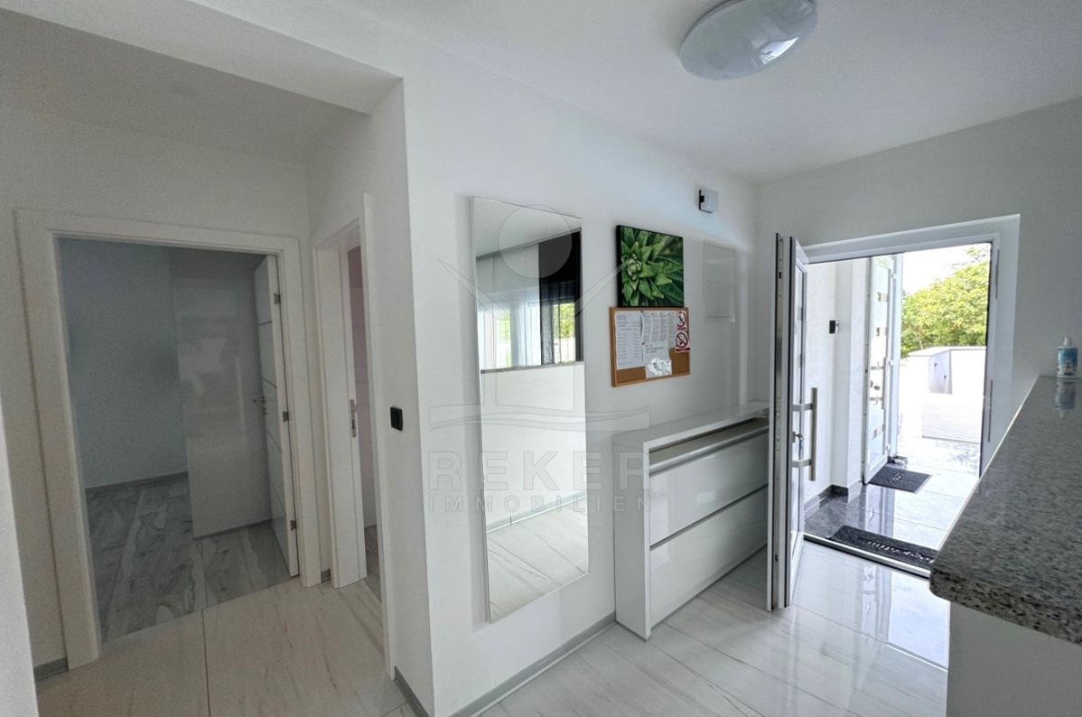 Die luxuriöse Haushälfte befindet sich auf der einzigartigen Insel Krk, die bekannt ist für ihre reiche Geschichte, wertvollen Kulturgüter und wunderschönen Badebuchten. Die Immobilie bietet eine ruhige und attraktive Umgebung, nur 500 Meter vom Ortskern und den Einkaufsmöglichkeiten entfernt. Restaurants befinden sich ebenfalls in der Nähe. Das Zentrum (Krk) und das Meer sind etwa 5 km entfernt und mit einer kurzen Autofahrt schnell erreichbar. Die Insel Krk bietet eine Vielzahl an Freizeitmöglichkeiten und lädt dazu ein, ihre 60 kleinen Ortschaften, Orte und Städte zu entdecken. Gönnen Sie sich einen einzigartigen Aufenthalt inmitten der atemberaubenden Natur und dem mediterranen Flair von Krk.