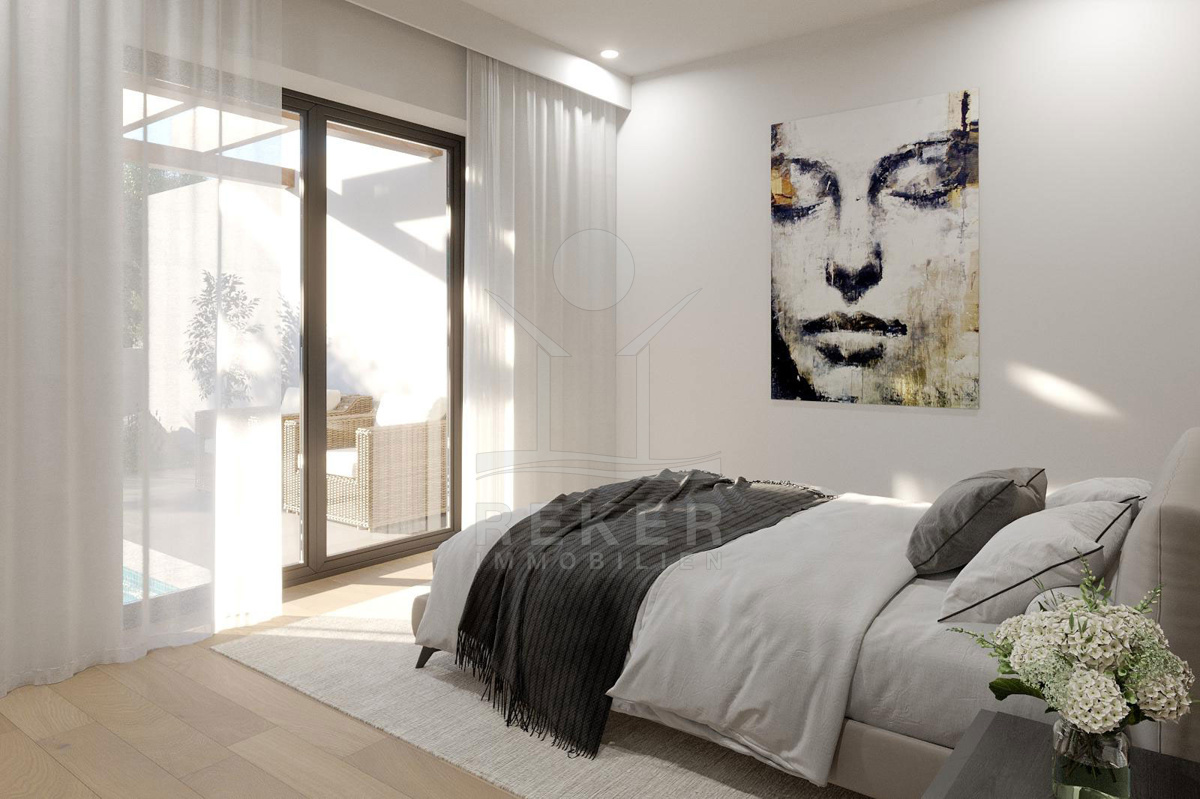 Diese Wohnung ist mit einer Klimaanlage ausgestattet und wird ohne Möbel angeboten. Im Erdgeschoss erwarten Sie eine einladende Eingangshalle, ein praktischer Abstellraum, ein Badezimmer, ein Schlafzimmer sowie eine großzügige Küche mit Esszimmer und Wohnzimmer. Von hier aus gelangen Sie zur nach Westen ausgerichteten Sommerküche und dem nach Süden ausgerichteten Swimmingpool. Im ersten Stock finden Sie zwei Schlafzimmer, jedes mit eigenem Bad. Eines der Schlafzimmer bietet Zugang zur Westterrasse, die Entspannung und Privatsphäre verspricht.