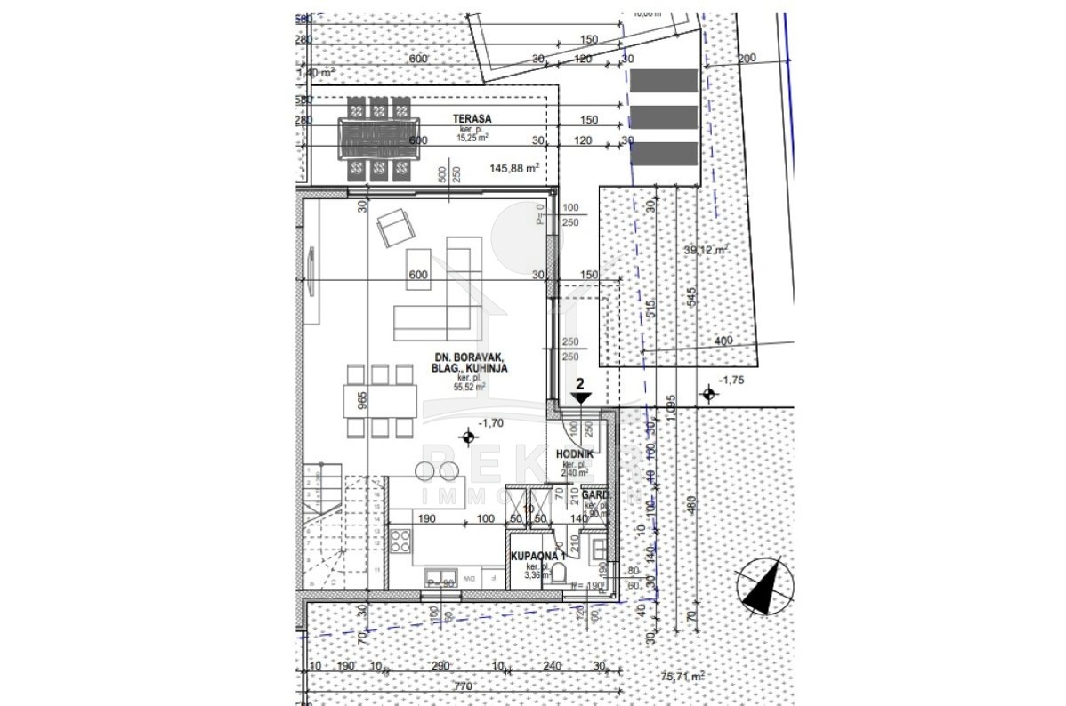 Der Neubau bietet eine attraktive und ruhige Lage in Malinska auf der Insel Krk. Nur 650 Meter vom Meer und 250 Meter vom Zentrum entfernt gelegen, ist die Umgebung ideal für Familien und Erholungssuchende. Restaurants, Einkaufsmöglichkeiten und Unterhaltungsmöglichkeiten sind bequem zu Fuß erreichbar. Die Siedlung verfügt über alle notwendigen Annehmlichkeiten wie Supermarkt, Kindergarten, Schule, öffentliche Verkehrsmittel, Bank, Spielplatz, öffentlichen Strand, Einkaufszentrum, Fitnesszentrum und vieles mehr. Die Nähe zum Flughafen, zur Autofähre und zu verschiedenen Freizeiteinrichtungen wie Fußballplätzen, Wassersportmöglichkeiten und einem Naturpark macht diese Lage besonders attraktiv. Malinska wird auch von dem Wiener Geologen Dr. L. Waagen als "Perle in der Inselwelt der Kvarner Bucht" bezeichnet und ist bekannt für seinen Charme, die lebhafte Uferpromenade, die Strände und die gastfreundliche Atmosphäre. Ein Ort, an dem Urlauber und Einheimische gleichermaßen die Schönheit und Ruhe der Insel Krk genießen können.
