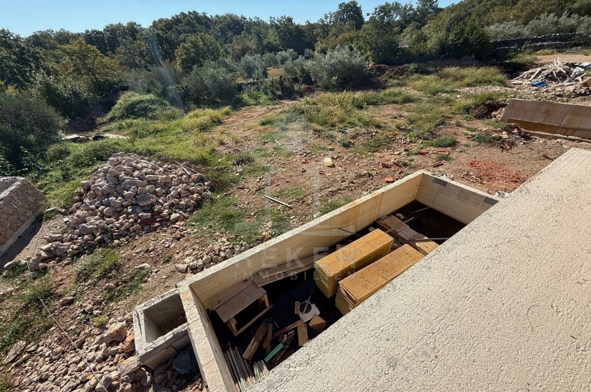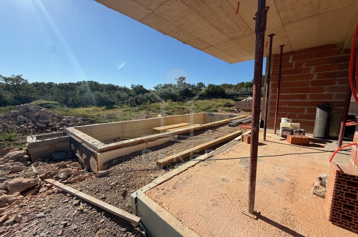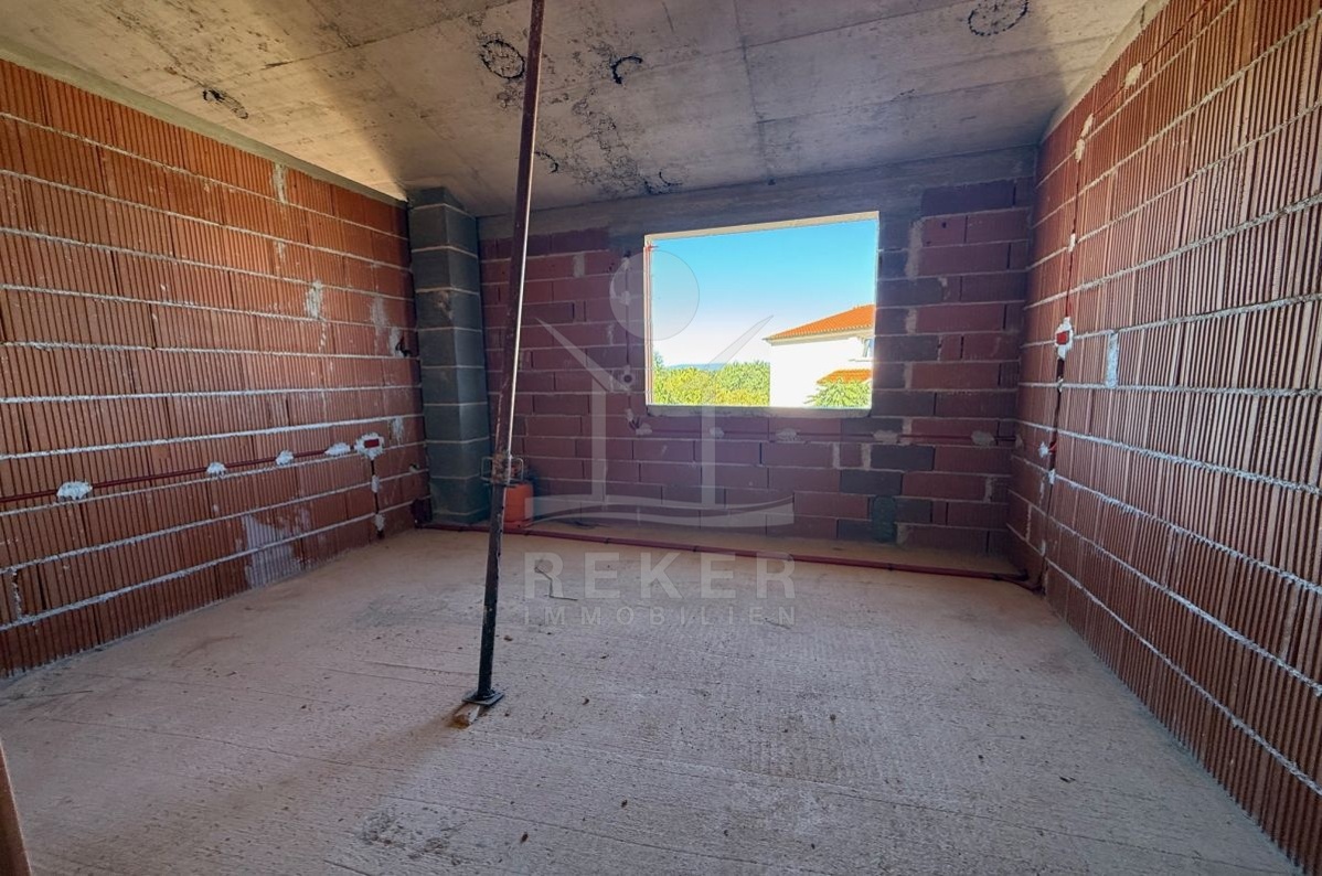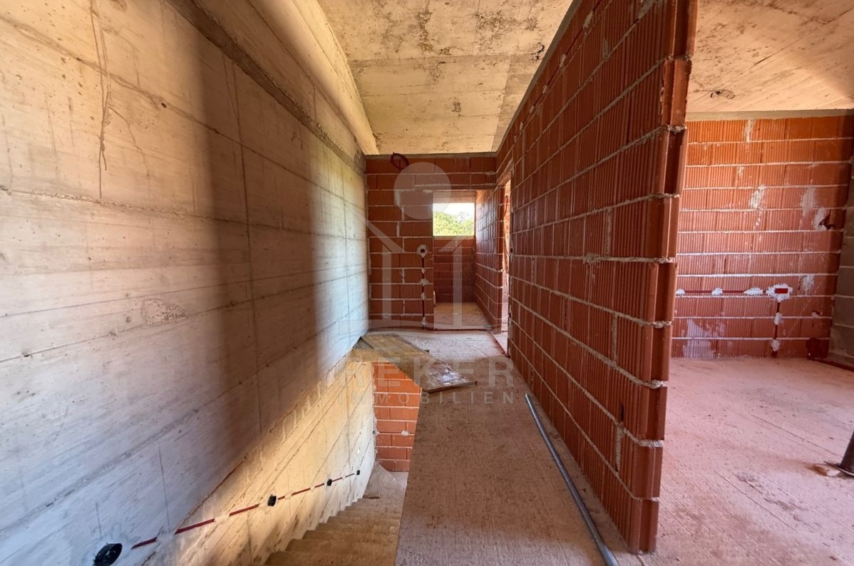 In Malinska auf der Insel Krk entsteht ein neues Doppelhaus. Moderne Architektur trifft hier auf eine ausgezeichnete Lage. Nur 150 Meter bis zum Meer, nur wenige Minuten bis zum Strand. Gleichzeitig genießen Sie Ruhe und Privatsphäre. Zwei Stellplätze am Haus machen das Ankommen leicht. Das Grundstück umfasst 150 m². Dazu gehören ein eigener Garten und ein privater Pool. Ein Platz zum Entspannen. Zum Schwimmen oder für gemeinsame Stunden mit Familie und Freunden. Die 14 m² große Terrasse grenzt direkt an den Wohnbereich und bietet Raum für sonnige Nachmittage und laue Abende.
