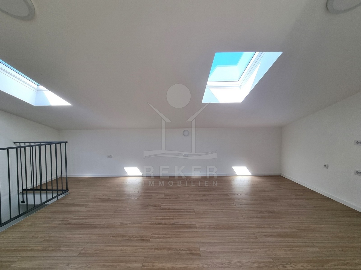 Das Dachgeschoss bietet einen großen Raum mit Badezimmer, ideal nutzbar als Fitnessraum oder Gästezimmer.