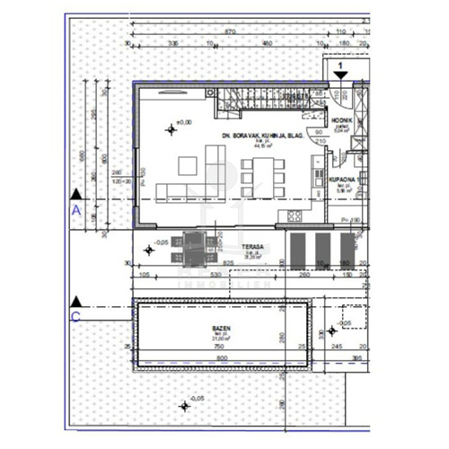 Eine überdachte Terrasse mit einem integrierten Pool von 21 m² ist perfekt für Sommervergnügen.
