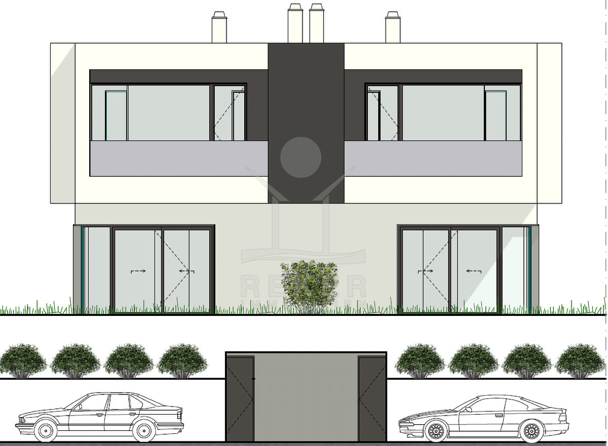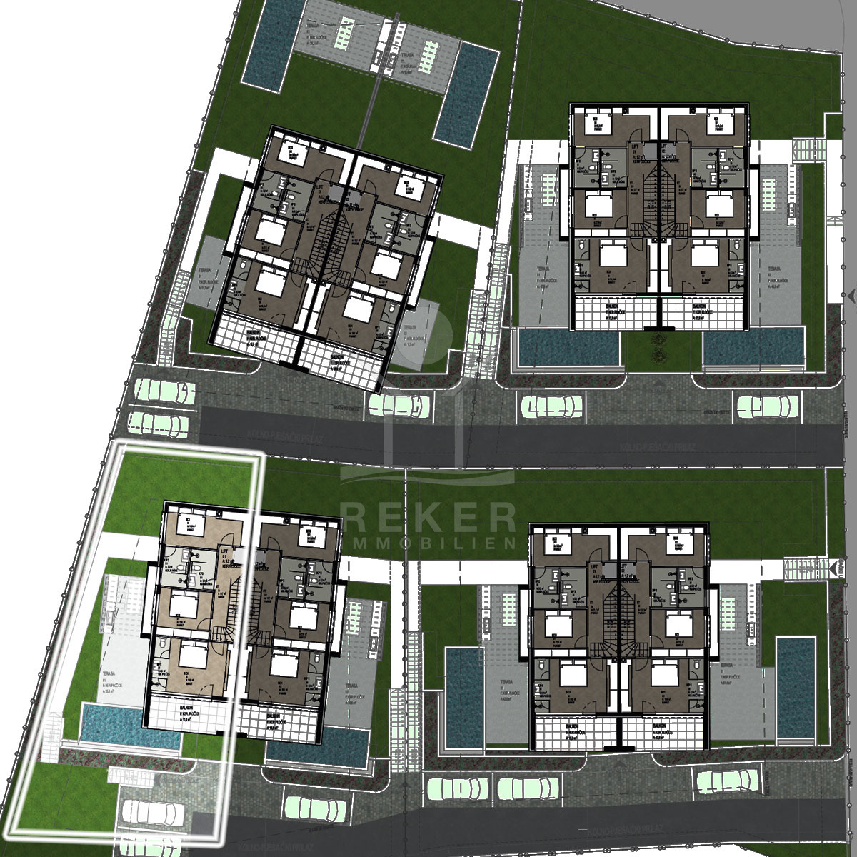 Die großzügige Terrasse dieser Haushälfte ist das ultimative Highlight. Mit einem Swimmingpool, einem Sonnendeck und einer Sommerküche bietet sie den Bewohnern eine erstklassige Outdoor-Lebensqualität. Dieser Raum lädt zum Entspannen, Schwimmen und Genießen von Mahlzeiten im Freien ein. Die geplante Garage sowie die beiden Stellplätze sorgen dafür, dass Sie und Ihre Gäste bequem parken können.