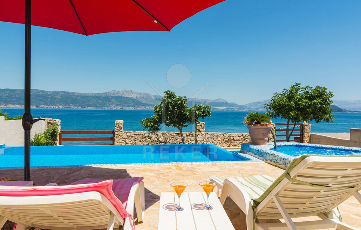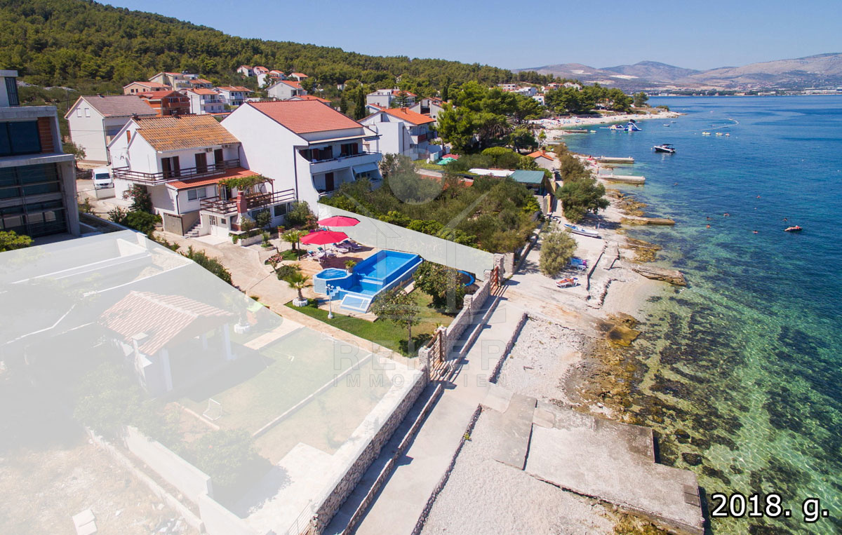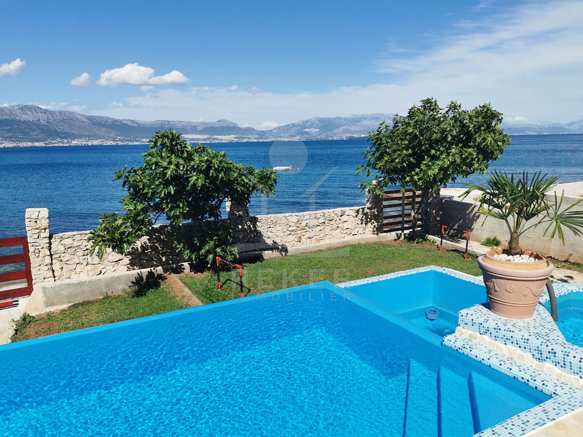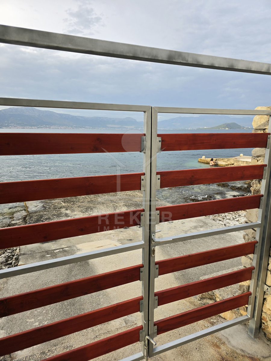 Das Haus befindet sich auf einer malerischen Insel in Slatine und liegt nur 10 Meter vom Meer entfernt. Das Fischerdorf Slatine auf der Insel Čiovo besticht durch seine idyllische Lage an der dalmatinischen Küste und bietet atemberaubende Ausblicke auf das Adriatische Meer. Die Umgebung ist von üppiger mediterraner Vegetation und malerischen Stränden geprägt, die zum Schwimmen, Schnorcheln und Entspannen einladen. Das Dorf hat eine reiche kulturelle Geschichte, die sich in der lokalen Küche und den historischen Sehenswürdigkeiten widerspiegelt. Von Slatine aus sind Ausflüge zu nahegelegenen Inseln, Wanderungen durch die Natur, Tauch- und Schwimmmöglichkeiten sowie Besuche in der nahegelegenen UNESCO-Weltkulturerbestätte Trogir problemlos möglich. Die ruhige und freundliche Atmosphäre von Slatine macht es zu einem idealen Ort für Naturliebhaber und diejenigen, die dem Trubel entfliehen möchten. Mit einem guten Angebot an lokalen Einrichtungen und der Nähe zu größeren Städten wie Trogir und Split bietet Slatine eine hohe Lebensqualität in einer traditionellen dalmatinischen Umgebung. Genießen Sie das echte mediterrane Lebensgefühl in Ihrem neuen Zuhause.
