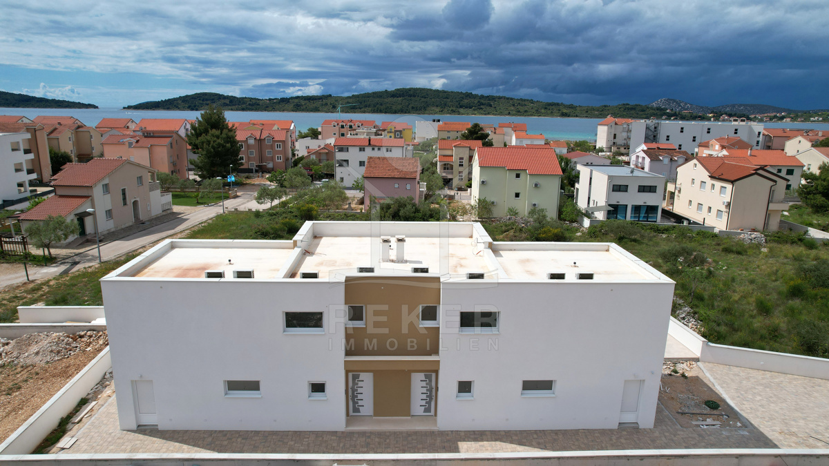 Der Neubau befindet sich in einem der begehrtesten Ferienorte Kroatiens. Nur 250 Meter vom Meer entfernt, bietet sie eine perfekte Mischung aus Entspannung und Erholung. In der Umgebung finden Sie zahlreiche Einrichtungen wie Restaurants, Strandbars, Geschäfte und öffentliche Verkehrsmittel, die Ihren Aufenthalt angenehm gestalten. Die nahtlose Verbindung zwischen dem charmanten Srima und dem lebendigen Vodice ermöglicht es Ihnen, sowohl die Ruhe als auch das pulsierende Leben der Region zu genießen. Der herrliche Hauptstrand von Srima mit feinem Kies und glasklarem Wasser eignet sich ideal für Familien und Nichtschwimmer. Die Promenade entlang des Meeres lädt zu romantischen Spaziergängen ein und bietet eine Vielzahl von gemütlichen Restaurants und Tavernen, in denen Sie lokale Köstlichkeiten probieren können. Dank der guten Anbindung an beliebte Ausflugsziele wie den Nationalpark Krka, Biograd na Moru und Sibenik können Sie die Schönheit Dalmatiens in vollen Zügen genießen. Insgesamt erwartet Sie in dieser attraktiven und ruhigen Umgebung eine vielseitige und komfortable Wohnsituation, die Ihnen alle Annehmlichkeiten für einen unvergesslichen Aufenthalt bietet.