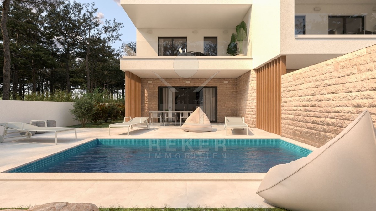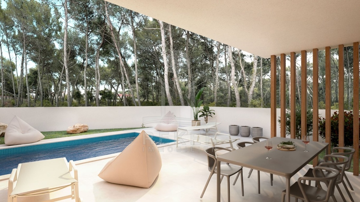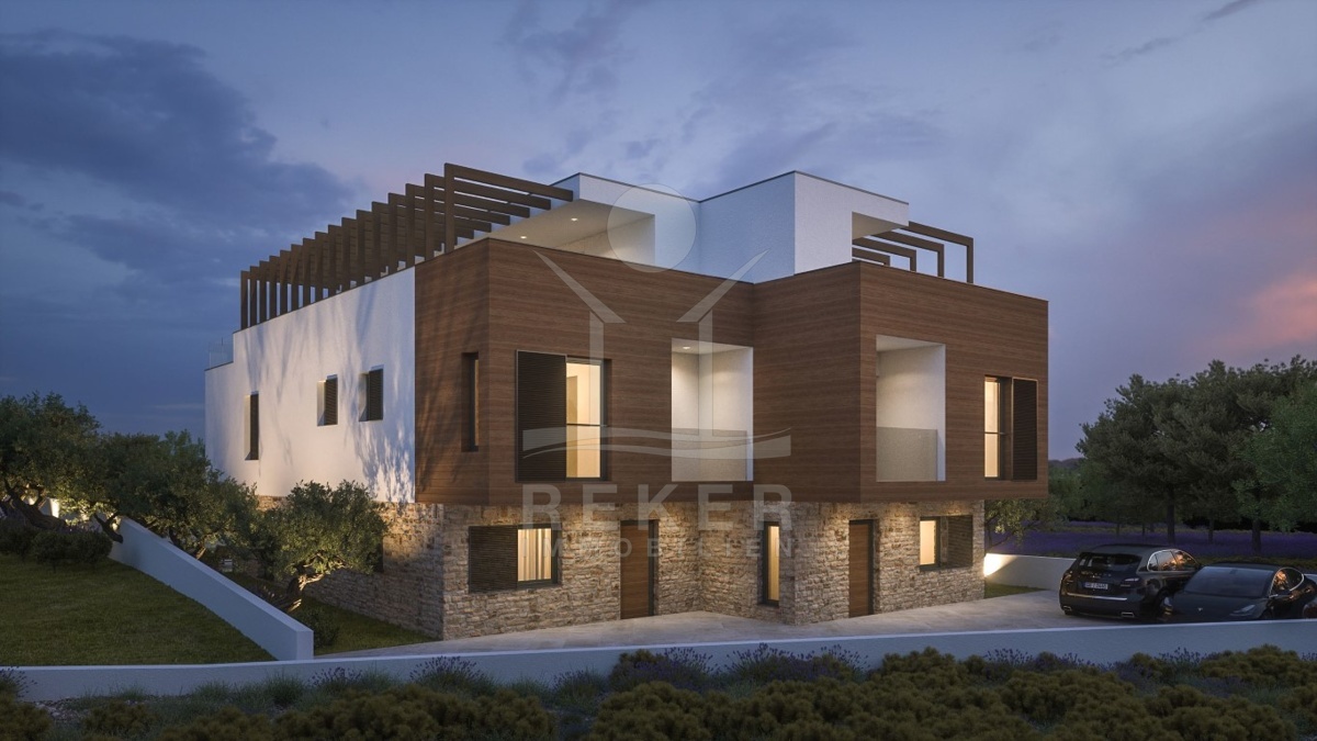 TAUCHEN SIE EIN IN PUREN LUXUS; MODERNE NEUBAUHAUSHÄLFTE MIT SWIMMINGPOOL IN TRIBUNJ
