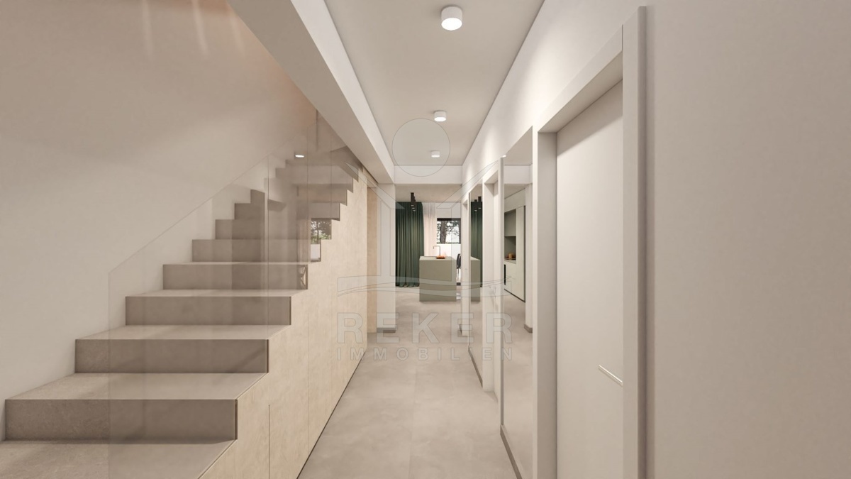 Die Haushälfte mit einer Wohnfläche von 210 m² erstreckt sich über drei Etagen. Derzeit befindet sich das Gebäude noch im Bau, jedoch wird die Fertigstellung und mögliche Belegung im Sommer 2024 erwartet. Moskitonetze, smarte Lichtschalter, elektrische Rollladenheber mit Zentral- und Fernbedienung sowie Videoüberwachung sorgen für zusätzlichen Komfort und Sicherheit. Außerdem stehen zwei Parkplätze zur Verfügung. Mit hochmodernen Ausstattungsmerkmalen und einem durchdachten Design bietet dieses Haus den perfekten Rahmen für gehobenes Wohnen.