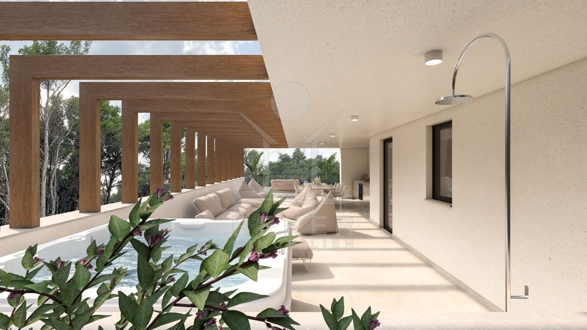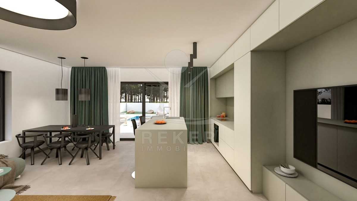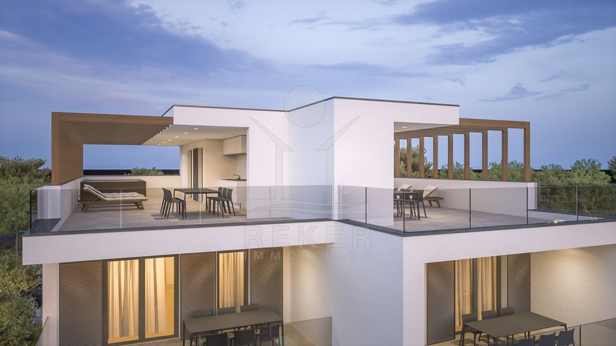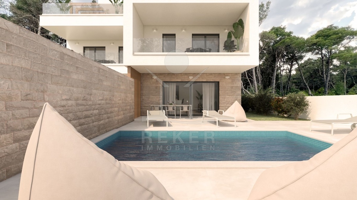 LUXURIÖSE NEUBAUHAUSHÄLFTE IN TRIBUNJ MIT TOP-MODERNER AUSSTATTUNG UND SWIMMINGPOOL