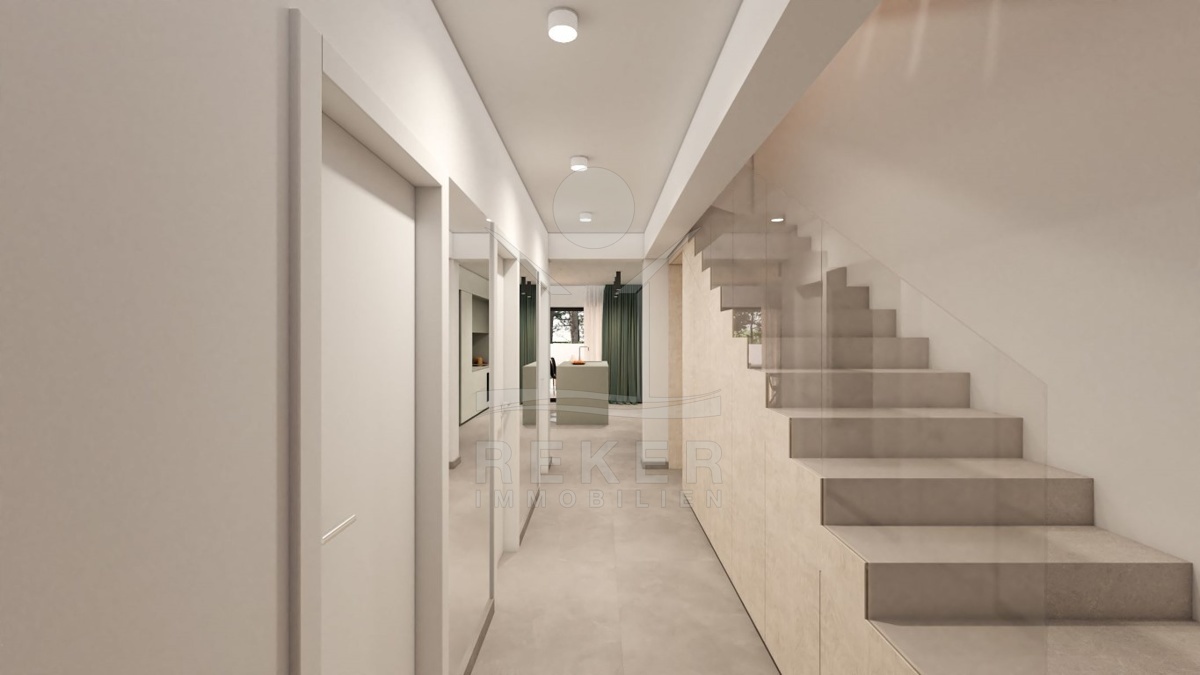 Die Haushälfte mit einer Wohnfläche von 210 m² erstreckt sich über drei Etagen. Derzeit befindet sich das Gebäude noch im Bau, jedoch wird die Fertigstellung und mögliche Belegung im Sommer 2024 erwartet. Moskitonetze, smarte Lichtschalter, elektrische Rollladenheber mit Zentral- und Fernbedienung sowie Videoüberwachung sorgen für zusätzlichen Komfort und Sicherheit. Außerdem stehen zwei Parkplätze zur Verfügung. Mit hochmodernen Ausstattungsmerkmalen und einem durchdachten Design bietet dieses Haus den perfekten Rahmen für gehobenes Wohnen.