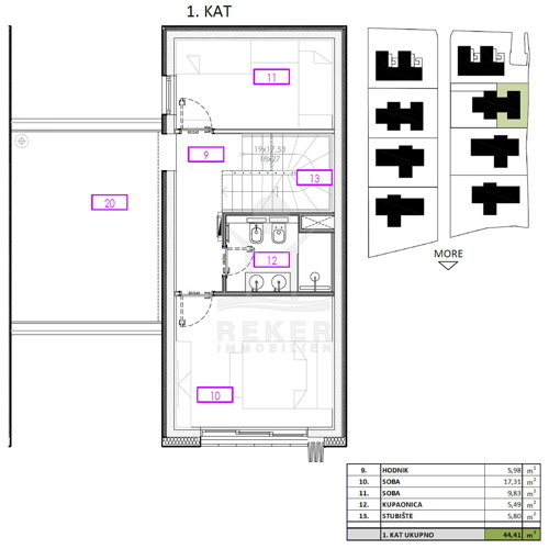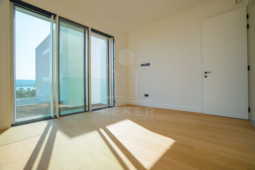 Im 1. Obergeschoss führt eine interne Treppe in einen Flur, der zu zwei Schlafzimmern mit direktem Meerblick aus den Fenstern führt. Hier finden Sie auch ein modernes Badezimmer. Auf insgesamt 36 m² genießen Sie sowohl Ruhe als auch einen herrlichen Ausblick.