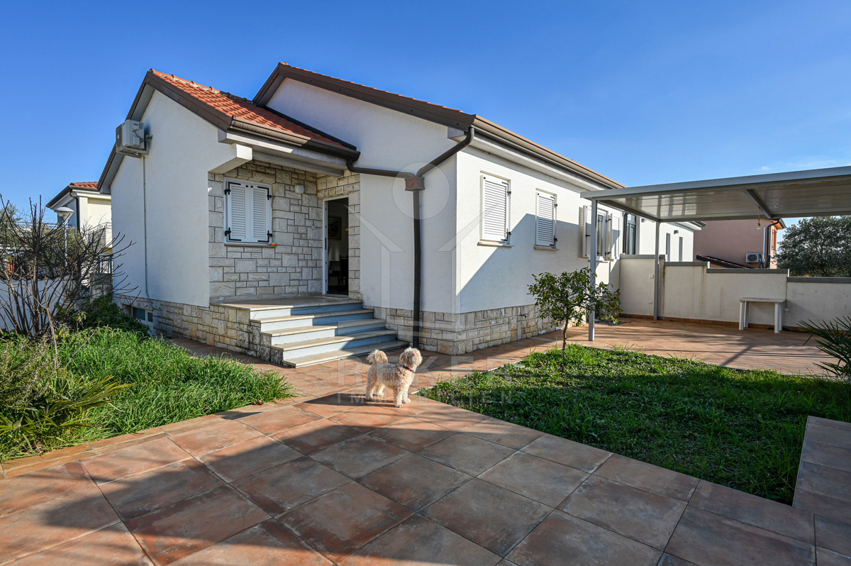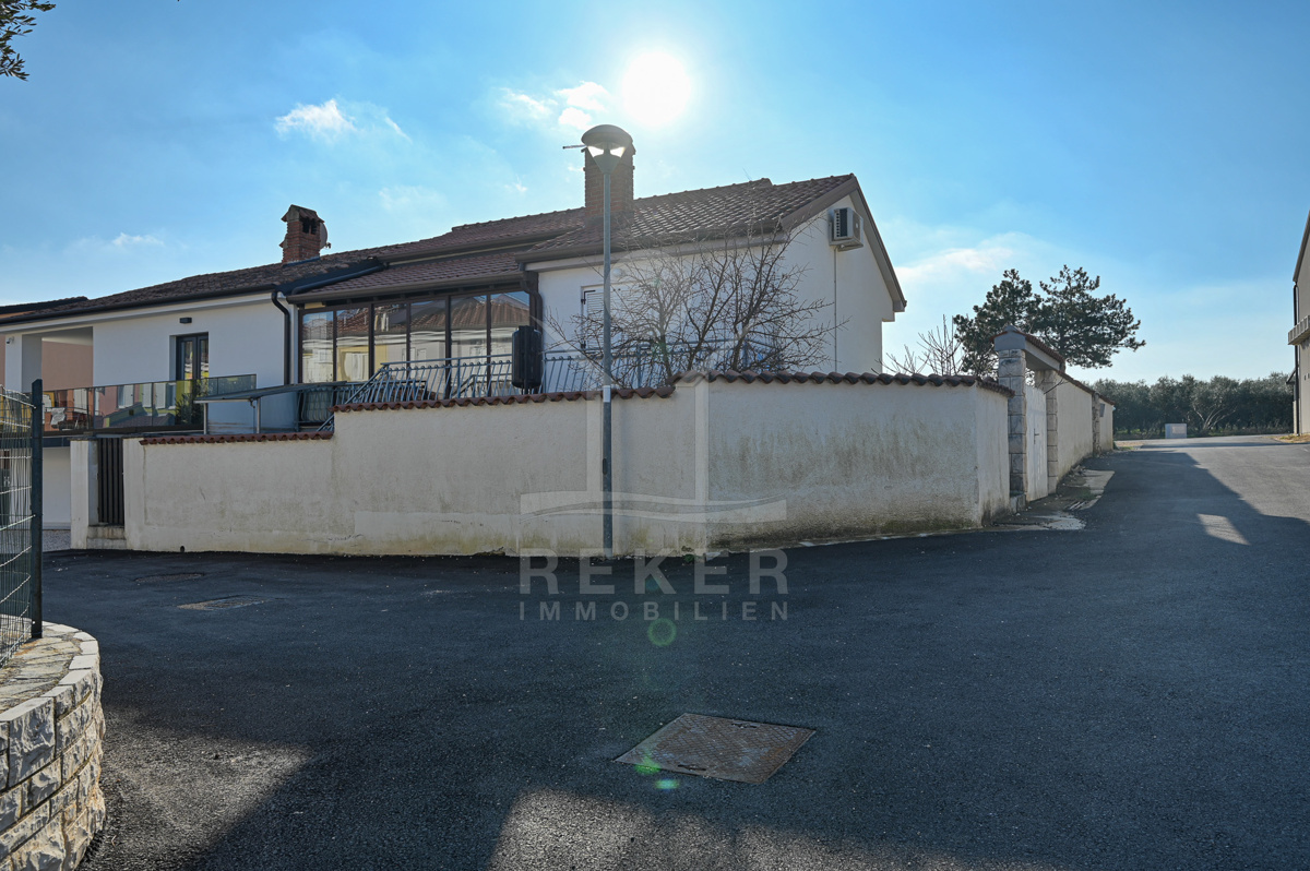 Nur wenige Schritte von der Adria entfernt steht in der Nähe von Umag diese gepflegte Doppelhaushälfte auf einem 278 m² großen Grundstück. Eine Lage, die Ruhe und Natur mit Küstennähe verbindet. Ein Ort, an dem Sie Ihre Freizeit entspannt genießen können. Die Zufahrt erfolgt über eine asphaltierte Straße, in der eigenen Garage steht Ihr Auto sicher.