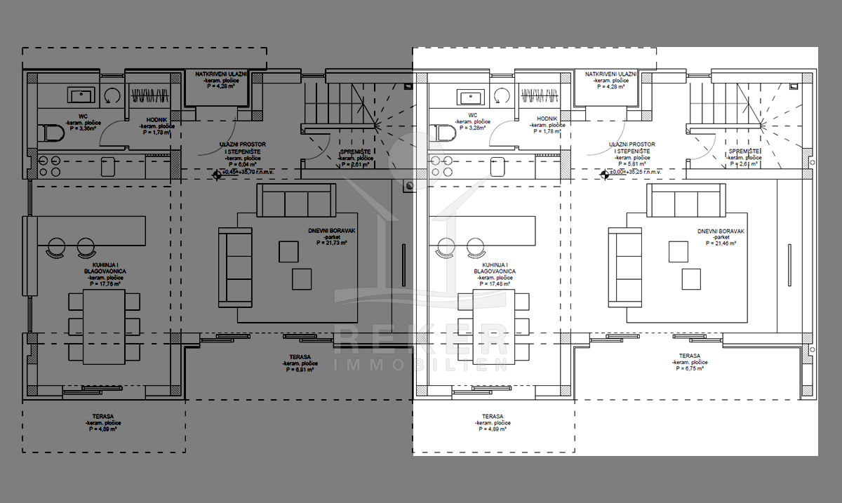 Die 52 m² große Terrasse mit eigenem Pool bietet Raum zum Entspannen und Genießen. Der mediterrane Garten und der gemauerte Grillplatz schaffen ein angenehmes Ambiente für gesellige Abende. Naturstein an der Fassade unterstreicht die hochwertige Bauweise und verleiht dem Haus Charakter.