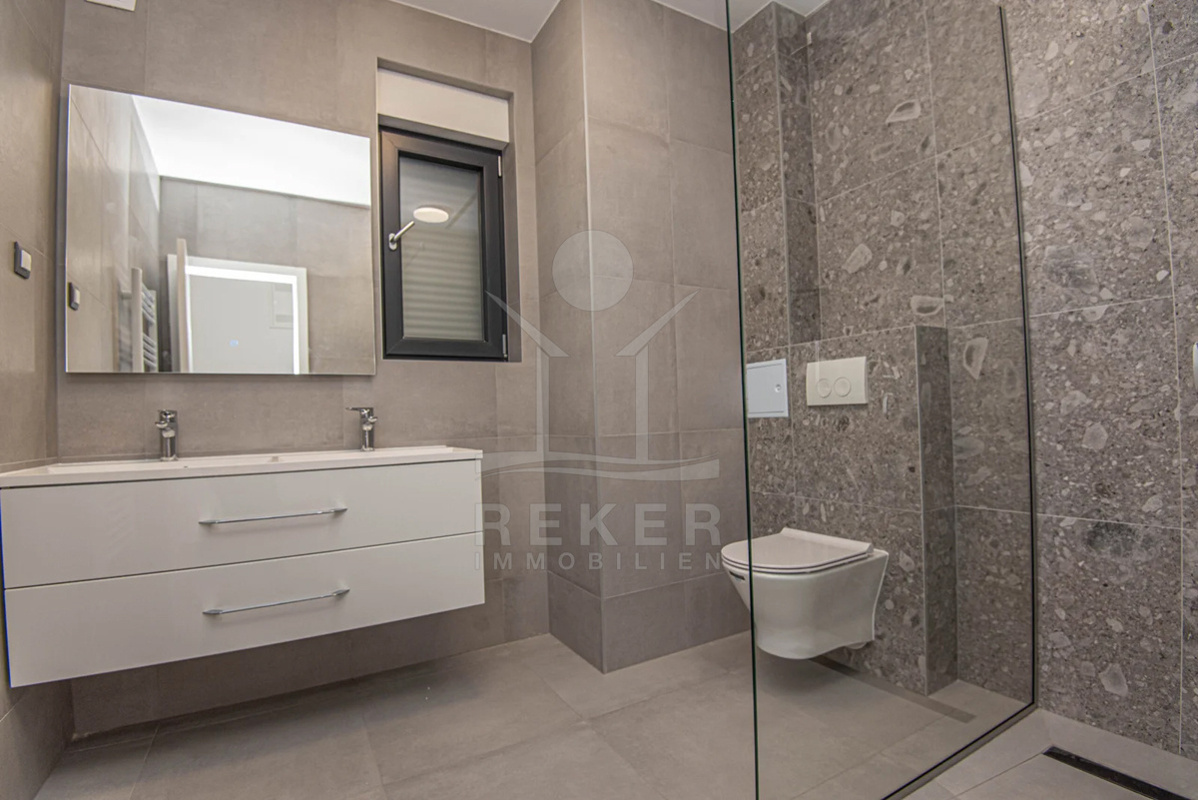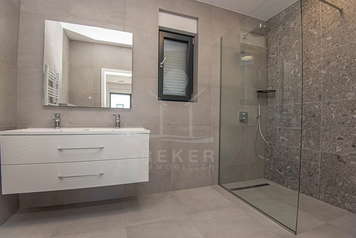 Am Rand von Vodice entsteht in sonniger Südwestlage eine moderne Doppelhaushälfte mit Meerblick. Das Zentrum erreichen Sie nach rund 1.300 Metern, den Strand nach etwa 1.200 Metern. Nah genug für spontane Ausflüge, weit genug für Ruhe und Privatsphäre. Zwei Stellplätze gehören direkt zum Haus, die Zufahrt erfolgt über eine asphaltierte Straße.